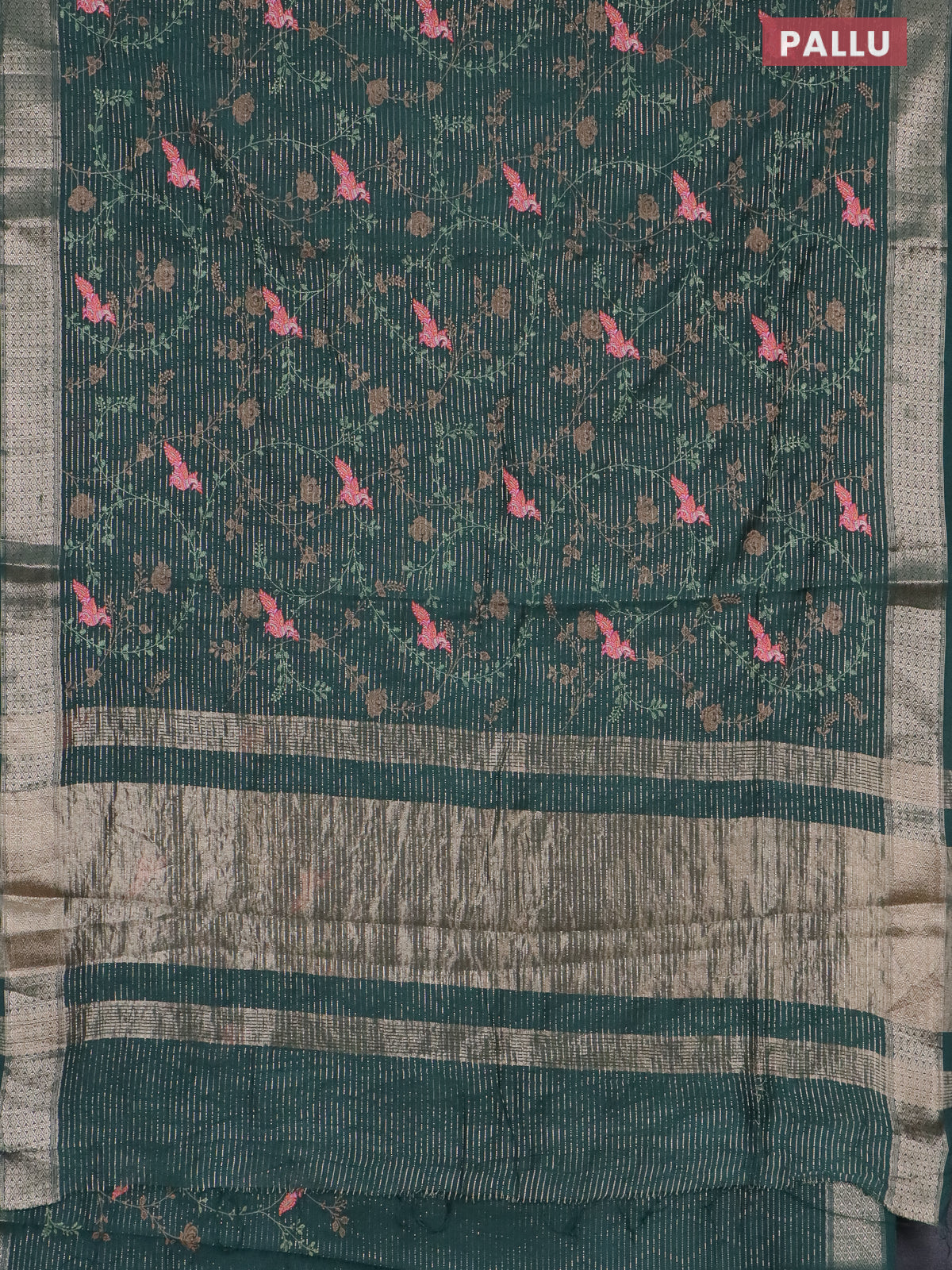 Assam silk saree green with allover zari weaves & embroidery work and zari woven border
