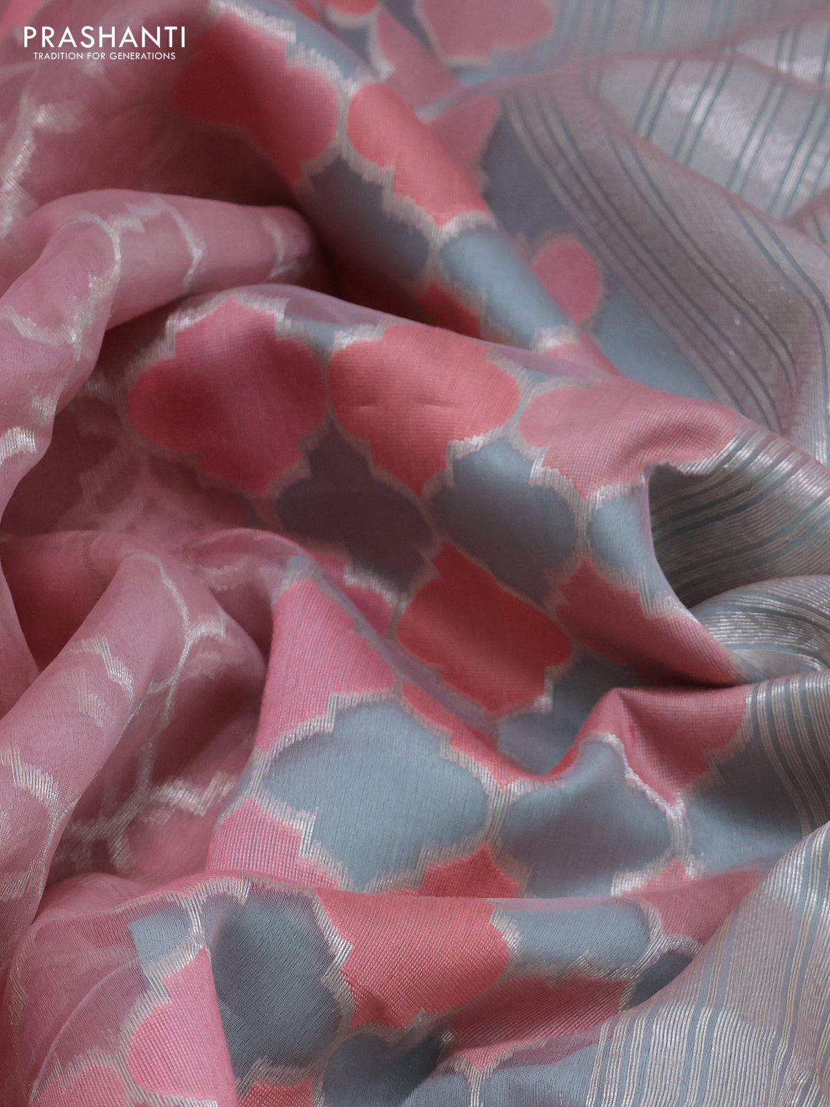 baby pink and teal blue Banarasi kora jamdhani silk saree