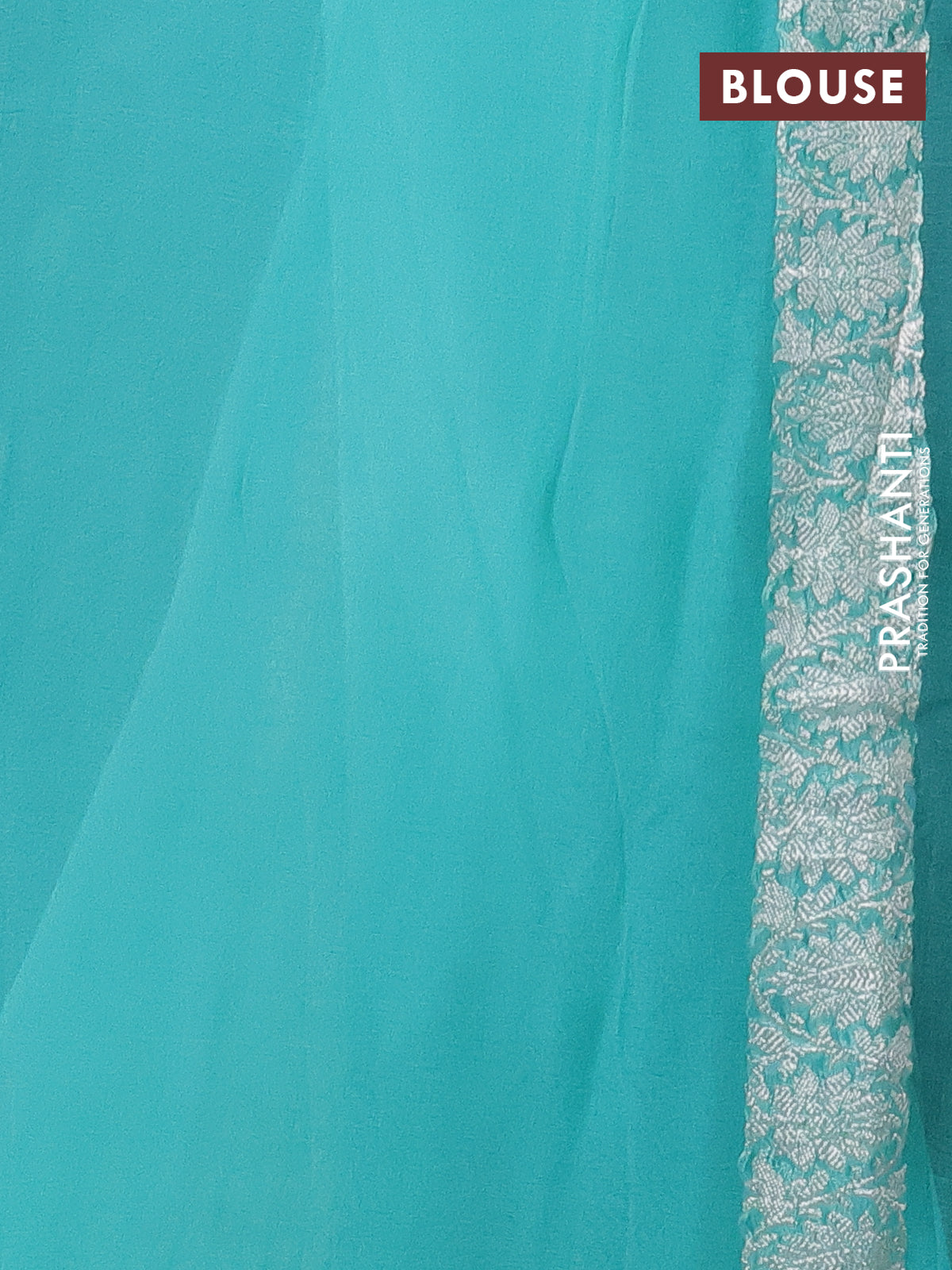 Banarasi chiffon silk saree bottle green and teal blue with silver zari woven buttas and silver zari woven border