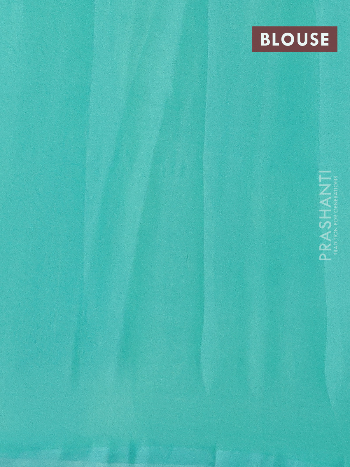 Banarasi chiffon silk saree peacock green and teal green shade with silver zari woven buttas and floral silver zari woven border