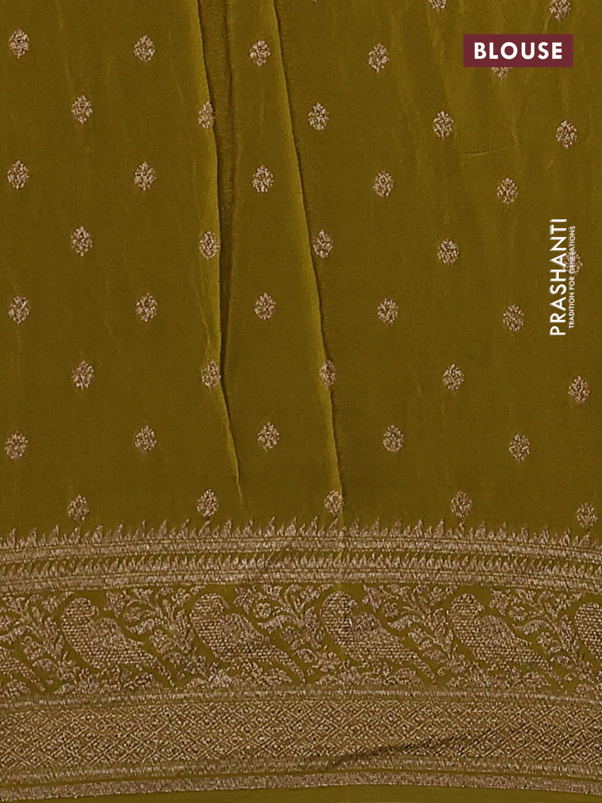 Banarasi crepe saree lime green with allover thread & zari weaves and woven border