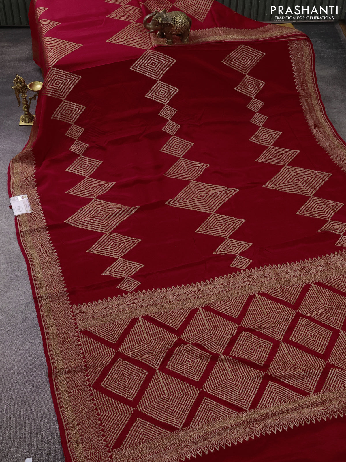 Banarasi crepe saree reddish pink with allover thread & zari geometric weaves and woven border