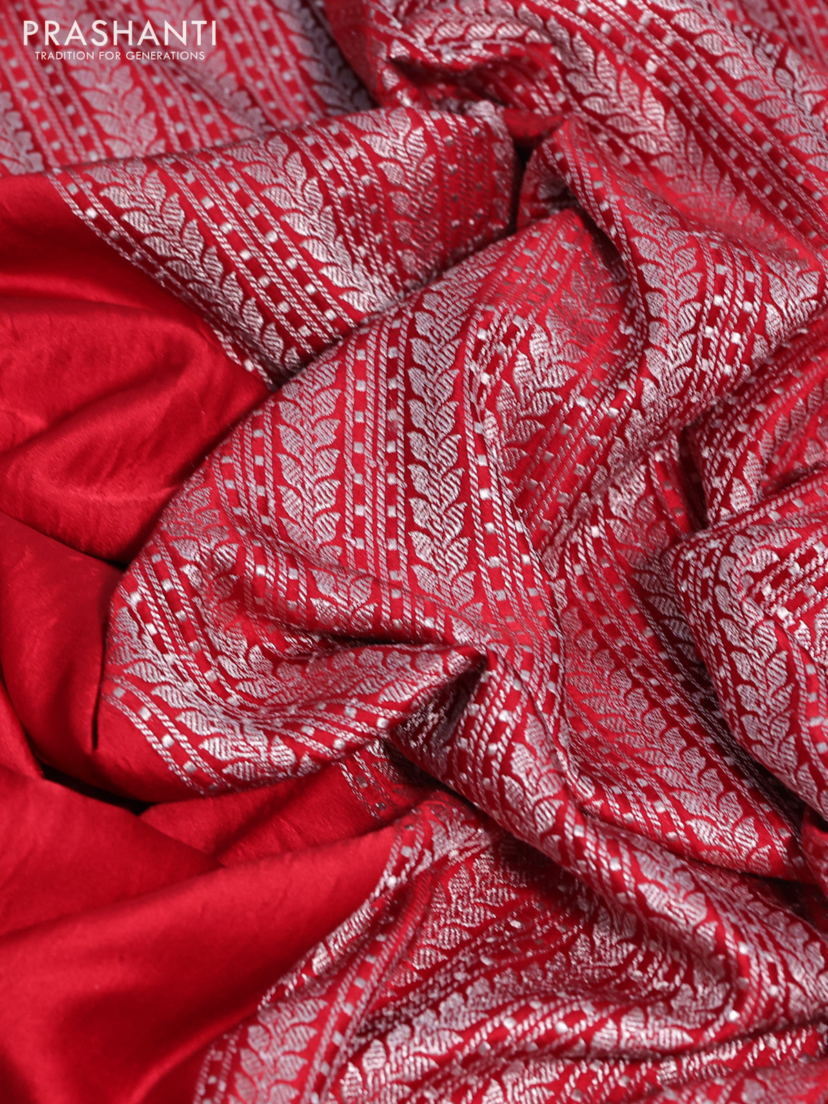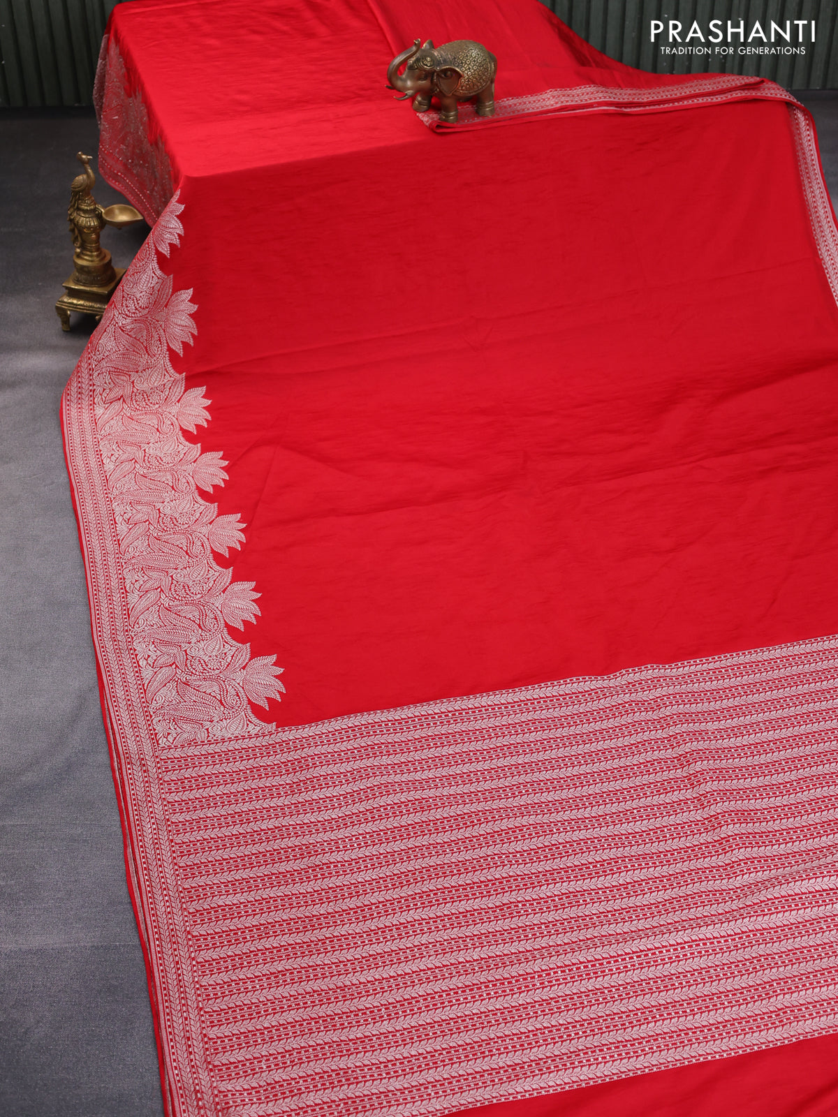 Banarasi crush crepe saree red with plain body and zari woven border