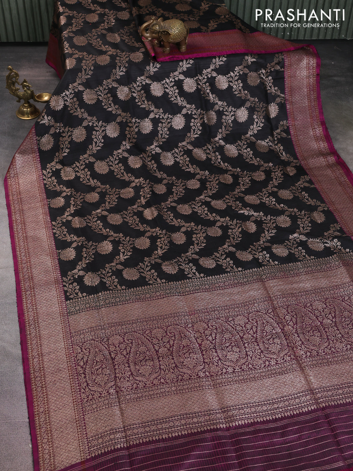 Banarasi dupion silk saree black and purple with allover thread & zari floral weaves and woven border