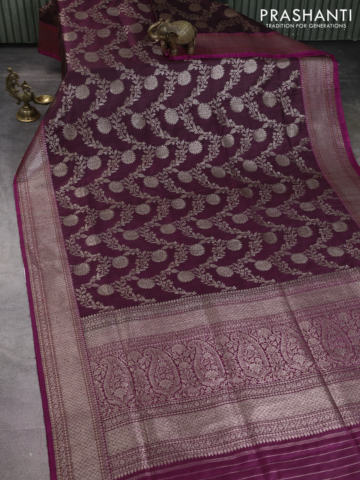 Banarasi dupion silk saree wine shade and magenta pink with allover thread & zari floral weaves and woven border