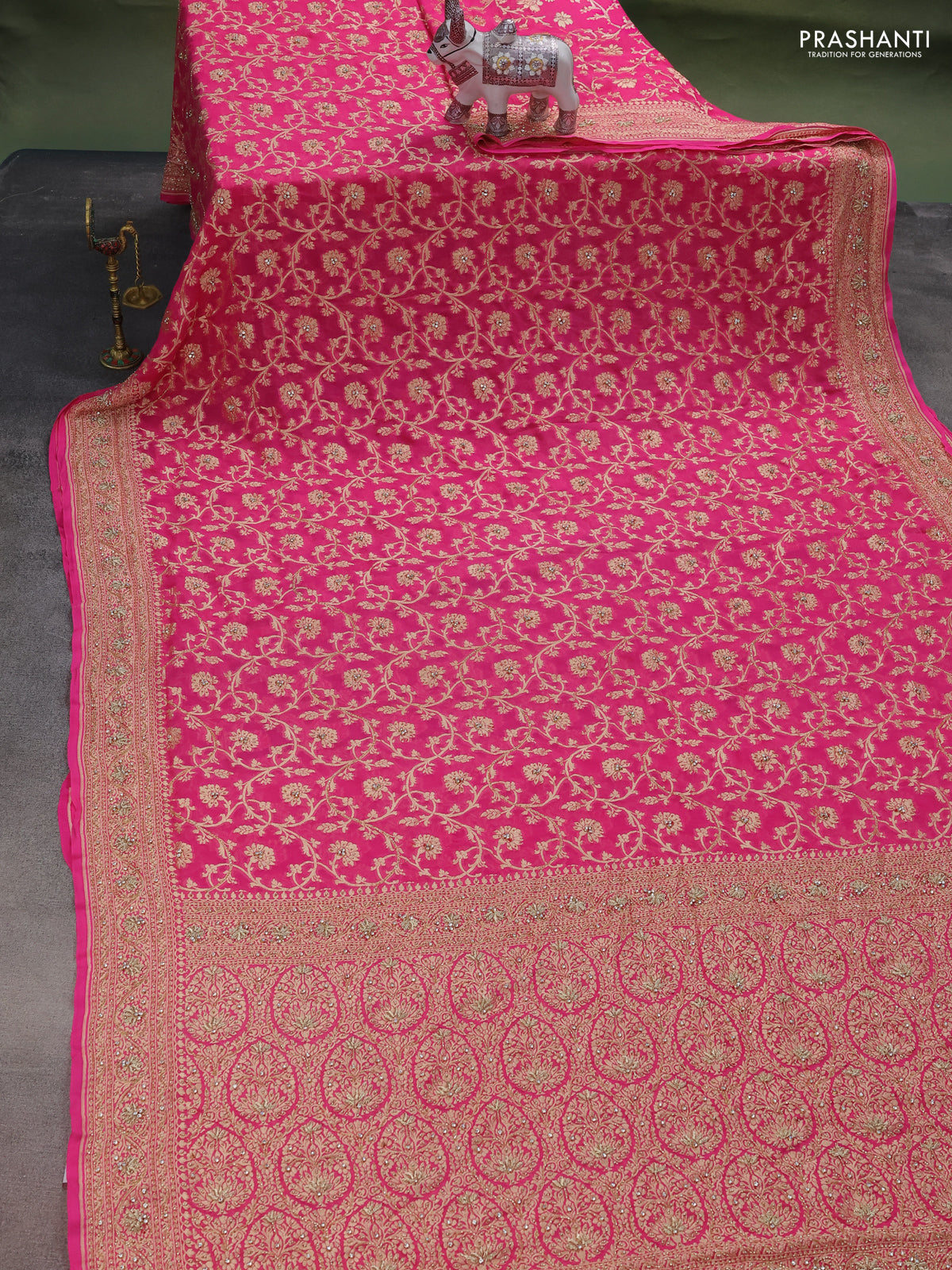 Banarasi georgette saree candy pink with allover jaal weaves & stone work and zardosi work border