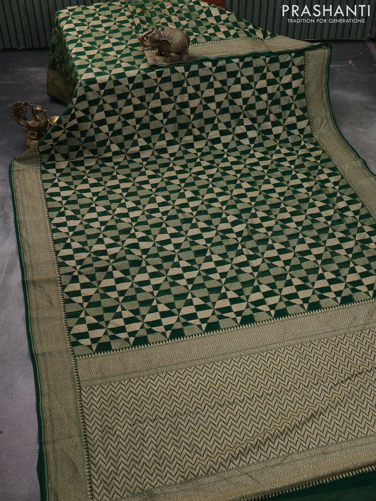 Banarasi georgette saree green with allover geometric weaves and woven border