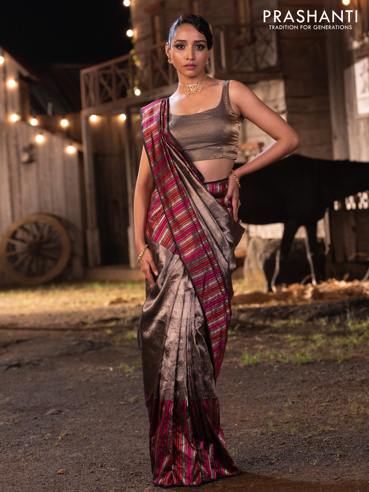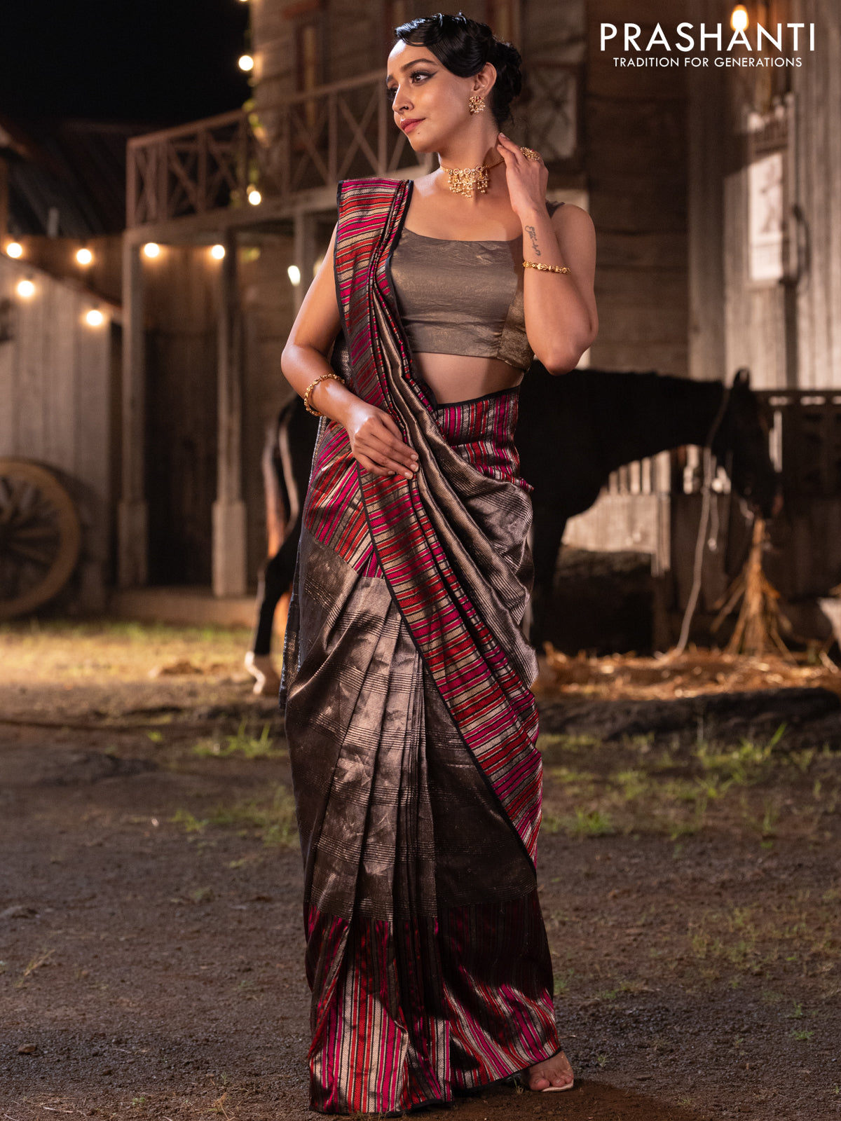 Banarasi katan tissue silk saree black with allover zari weaves and long thread & zari woven border