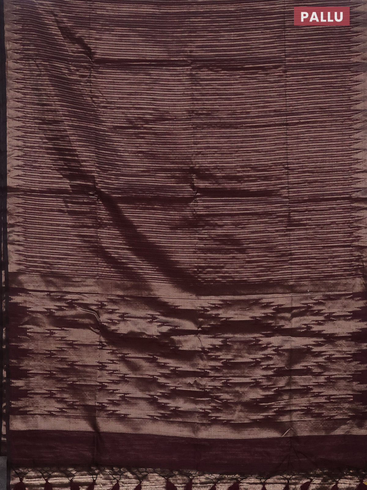 Banarasi matka tissue saree wine shade with allover zari weaves and temple deisgn zari woven border