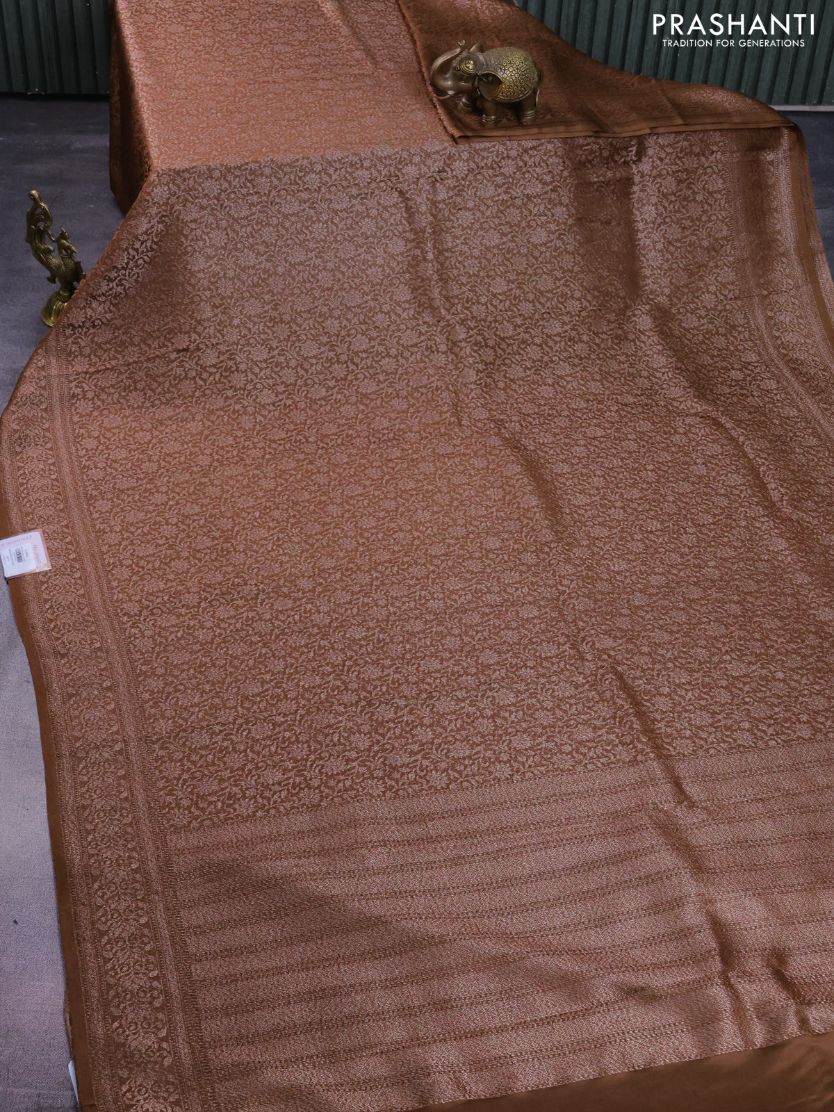 Banarasi semi crepe saree brown with allover thread & zari woven brocade weaves and woven border