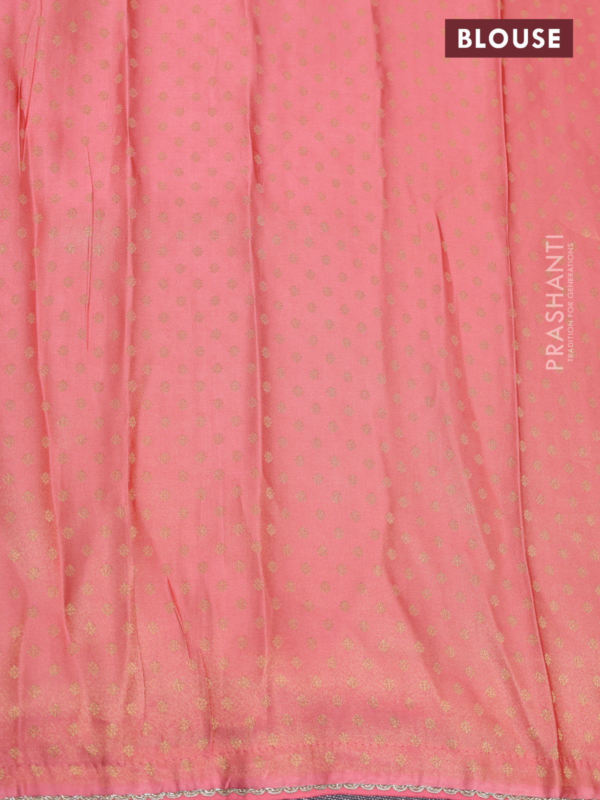 Banarasi semi crepe saree peach pink with allover zari woven brocade weaves and lace work border