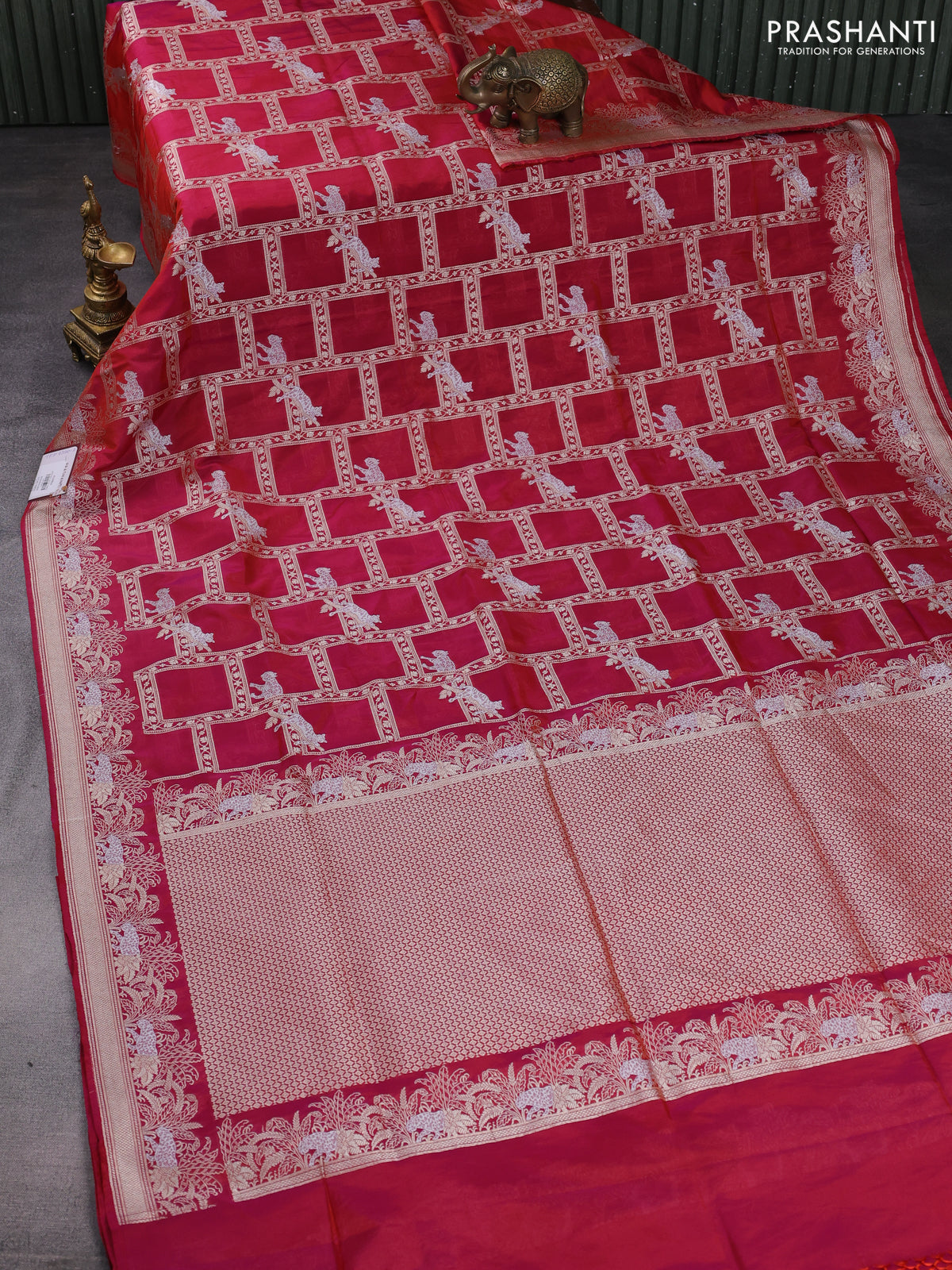Banarasi semi katan saree dual shade of pink with allover zari weaves and zari woven border