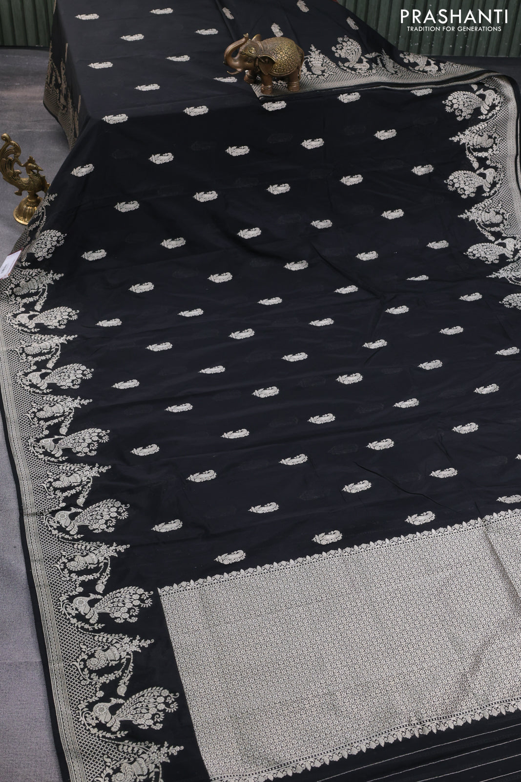 Banarasi semi katan silk saree black with zari woven buttas and rich zari woven border