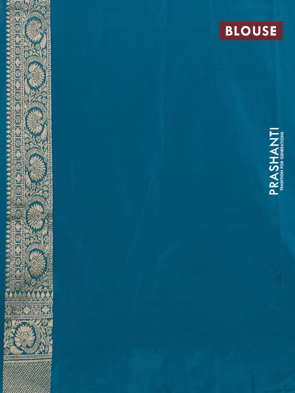 Banarasi semi katan silk saree dual shade of teal blue with zari woven buttas and rich zari woven border