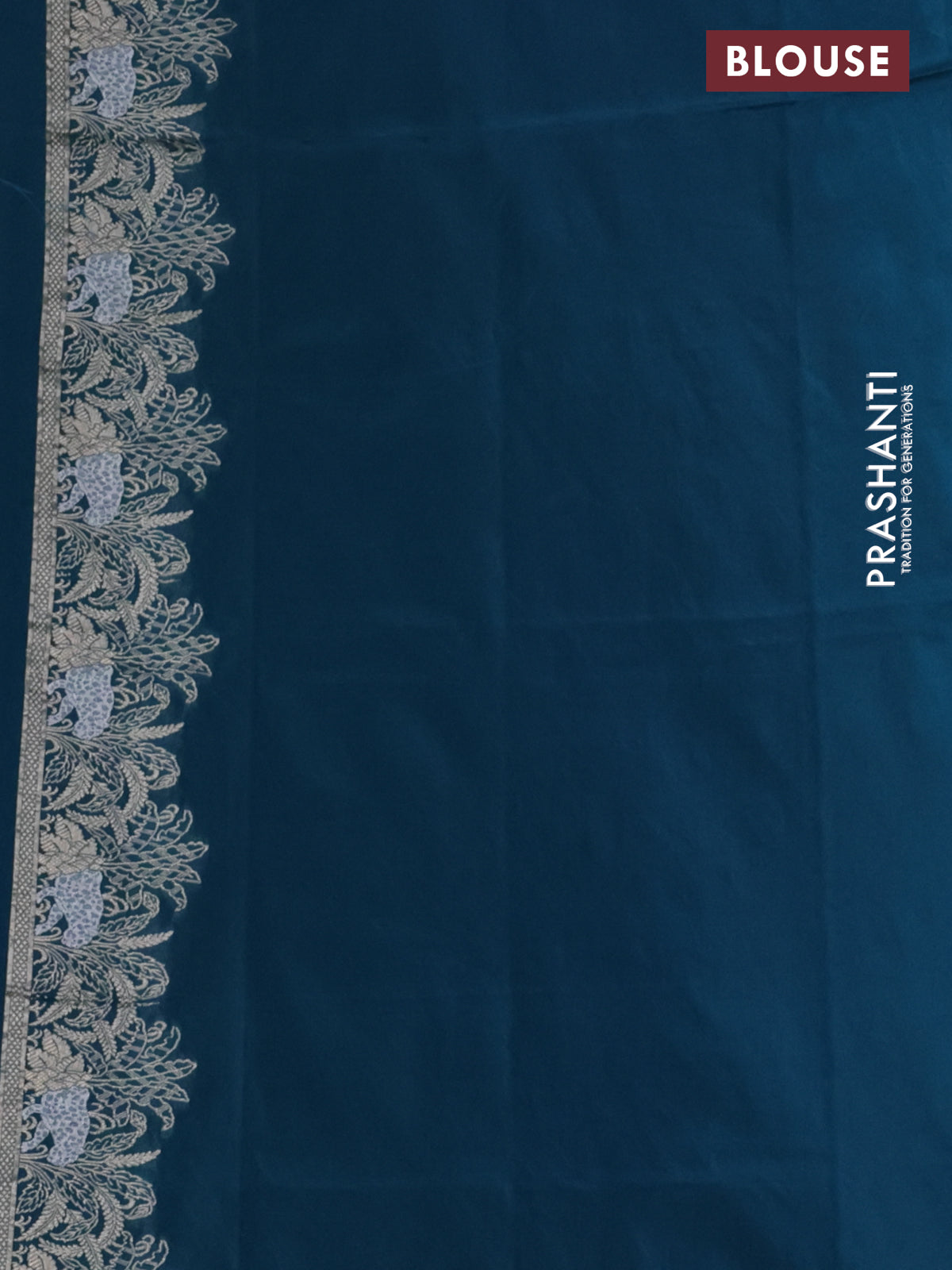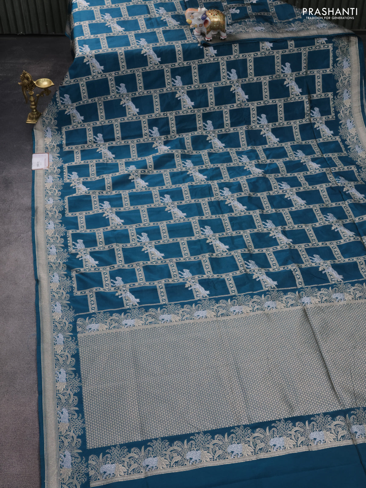 Banarasi semi katan silk saree peacock green with allover silver & gold zari weaves and zari woven border