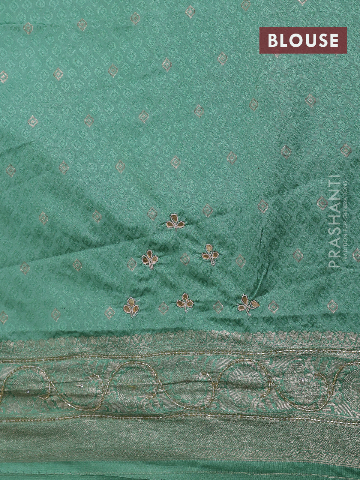 Banarasi silk saree pastel green with allover zari woven brocade weaves and zaridosi gotapatti work border
