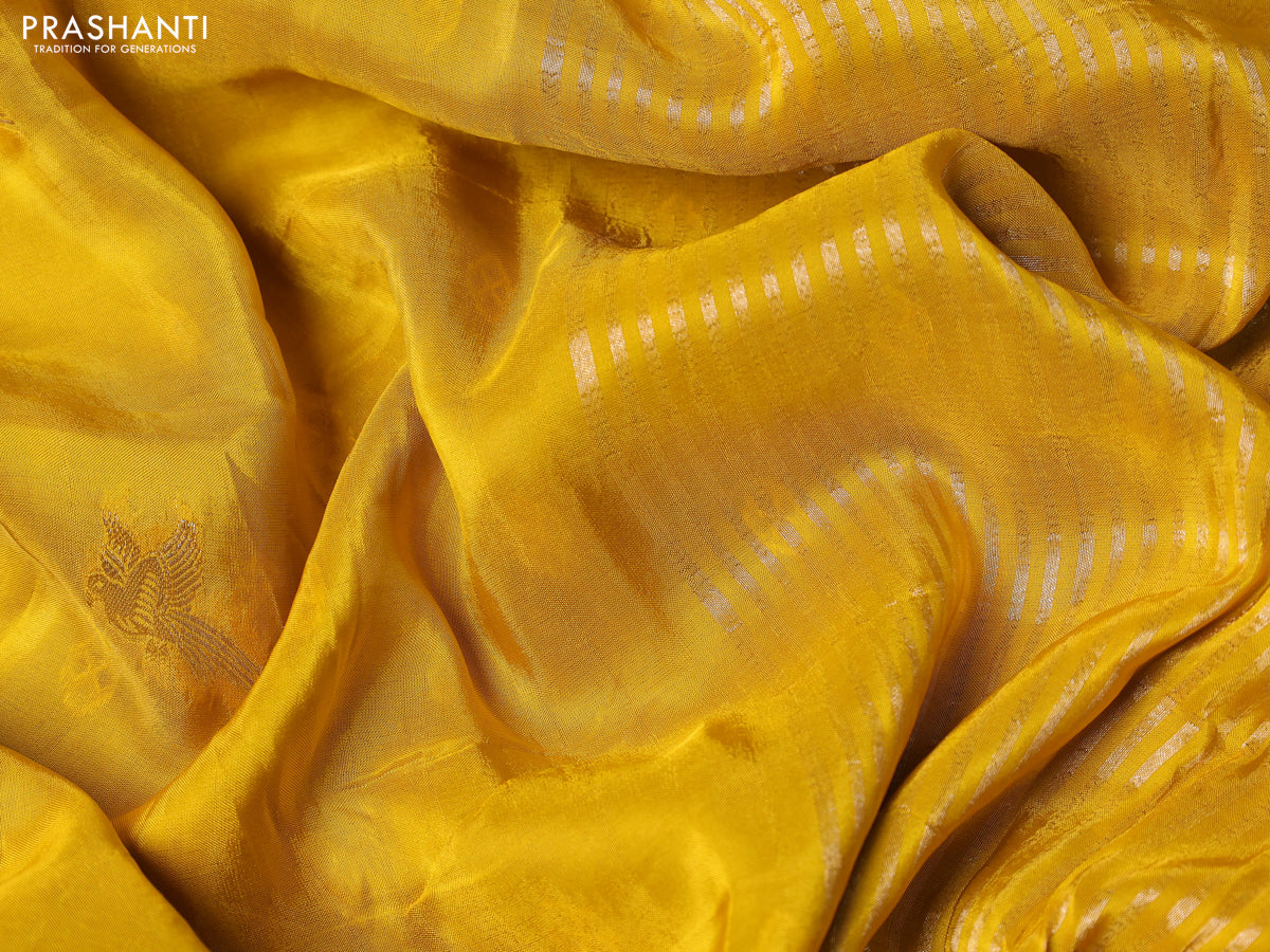 Banarasi silk saree yellow and violet with zari woven brids buttas and zari woven border