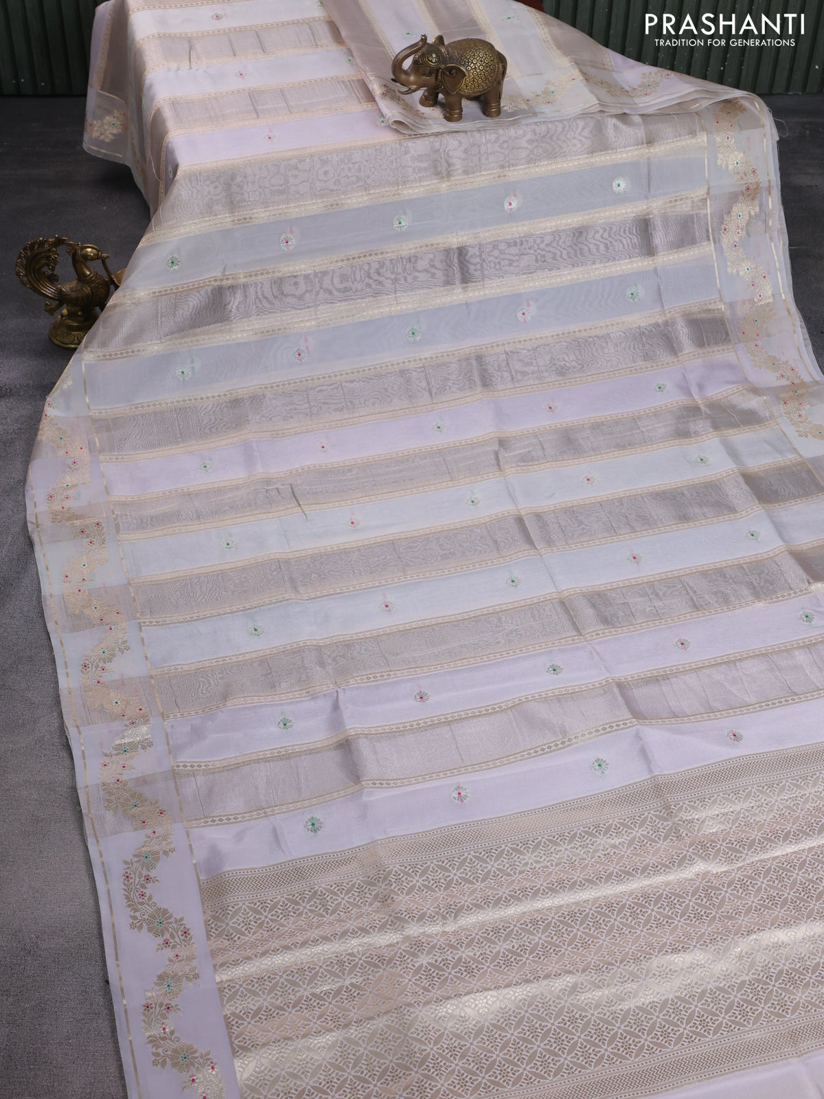 Banarasi tissue semi silk saree pastel grey with zari weaves & buttas and zari woven border