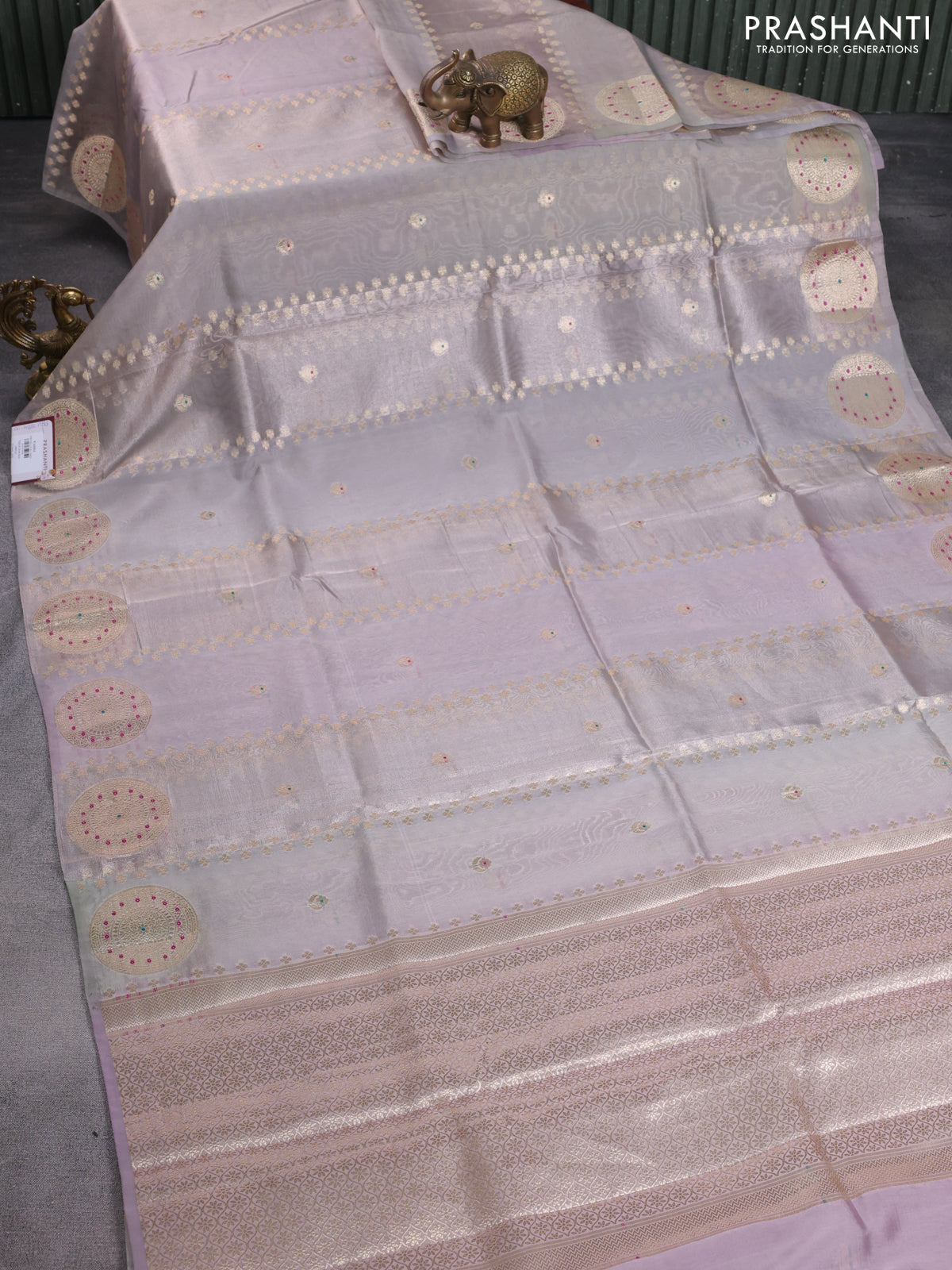 Banarasi tissue semi silk saree pastel grey with zari weaves & buttas and zari woven butta border