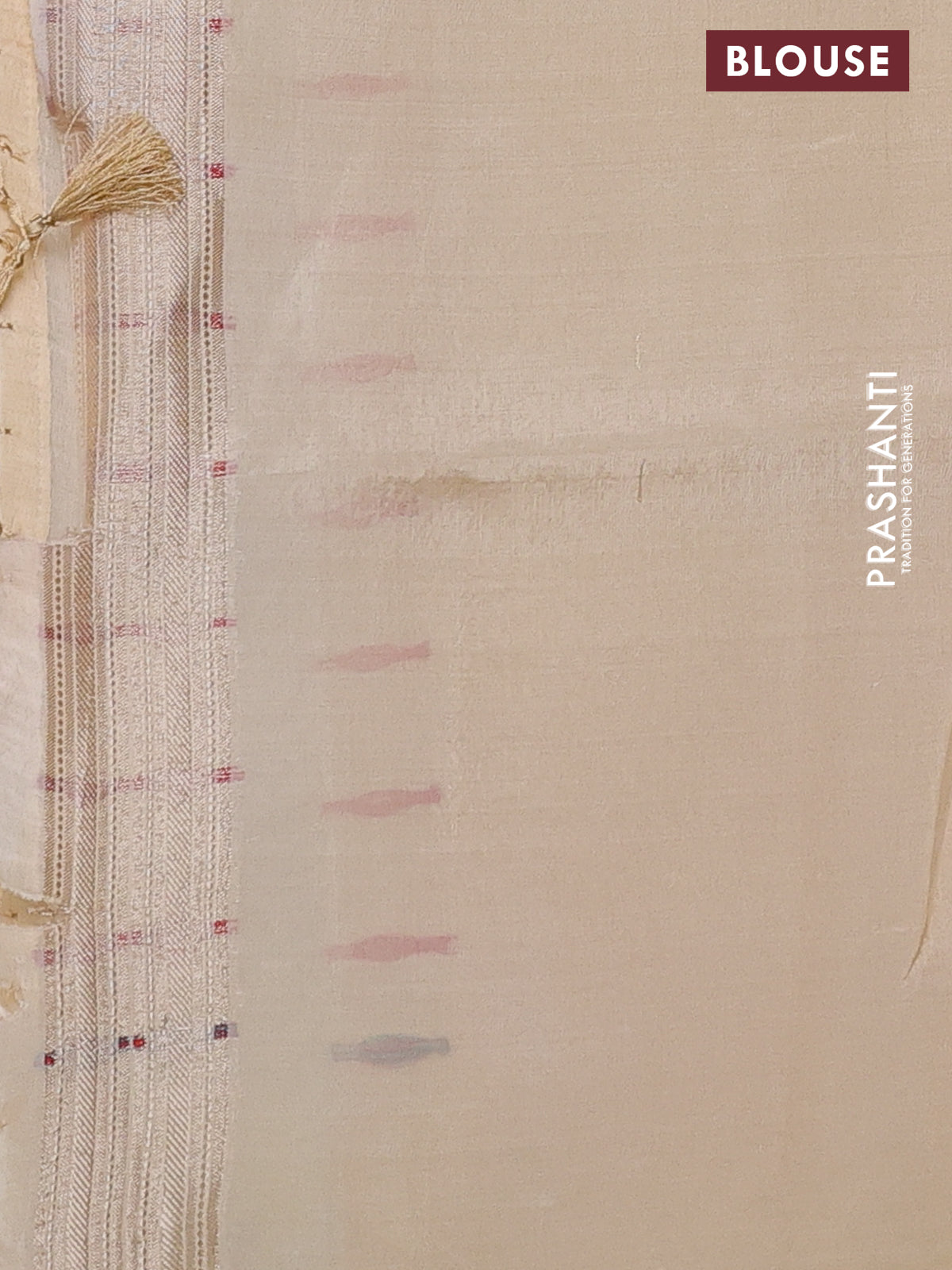 Banarasi tissue semi silk saree sandal with zari weaves & buttas and floral zari woven butta border