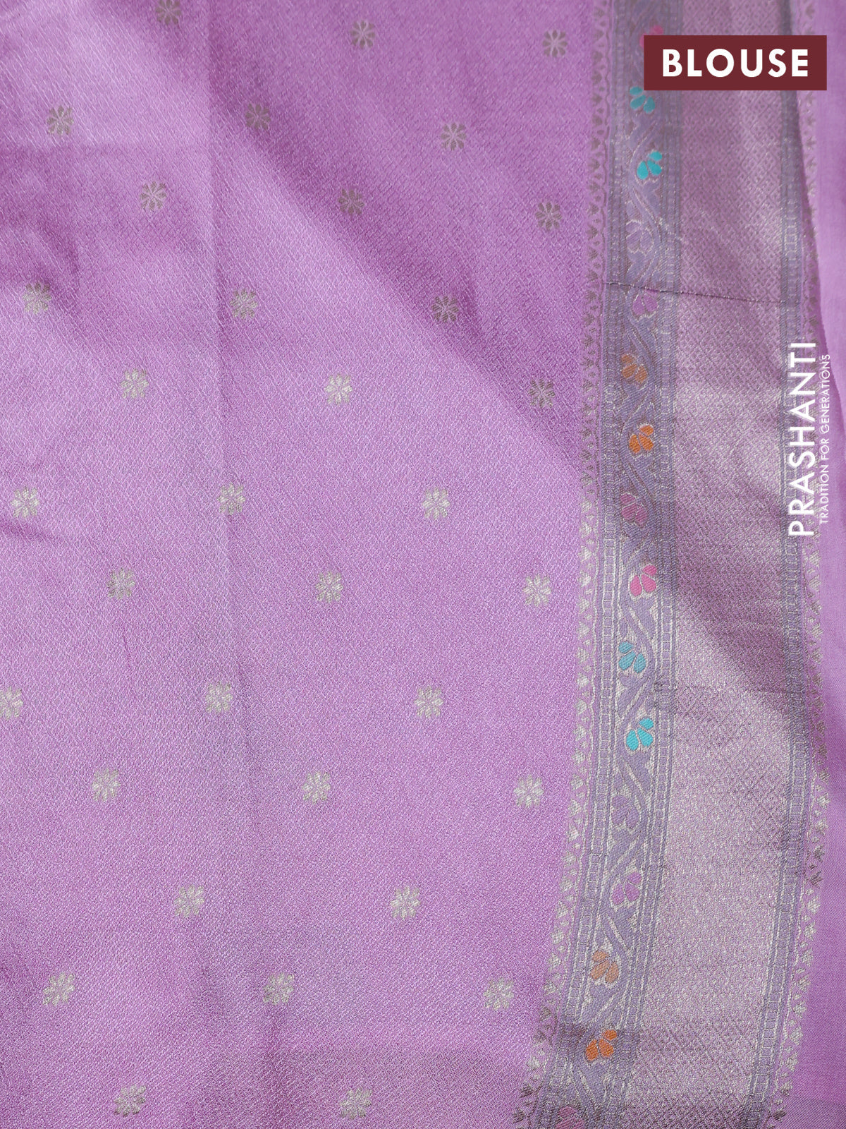 Banarasi tissue silk saree lavender with allover thread woven floral weaves and silver zari woven border