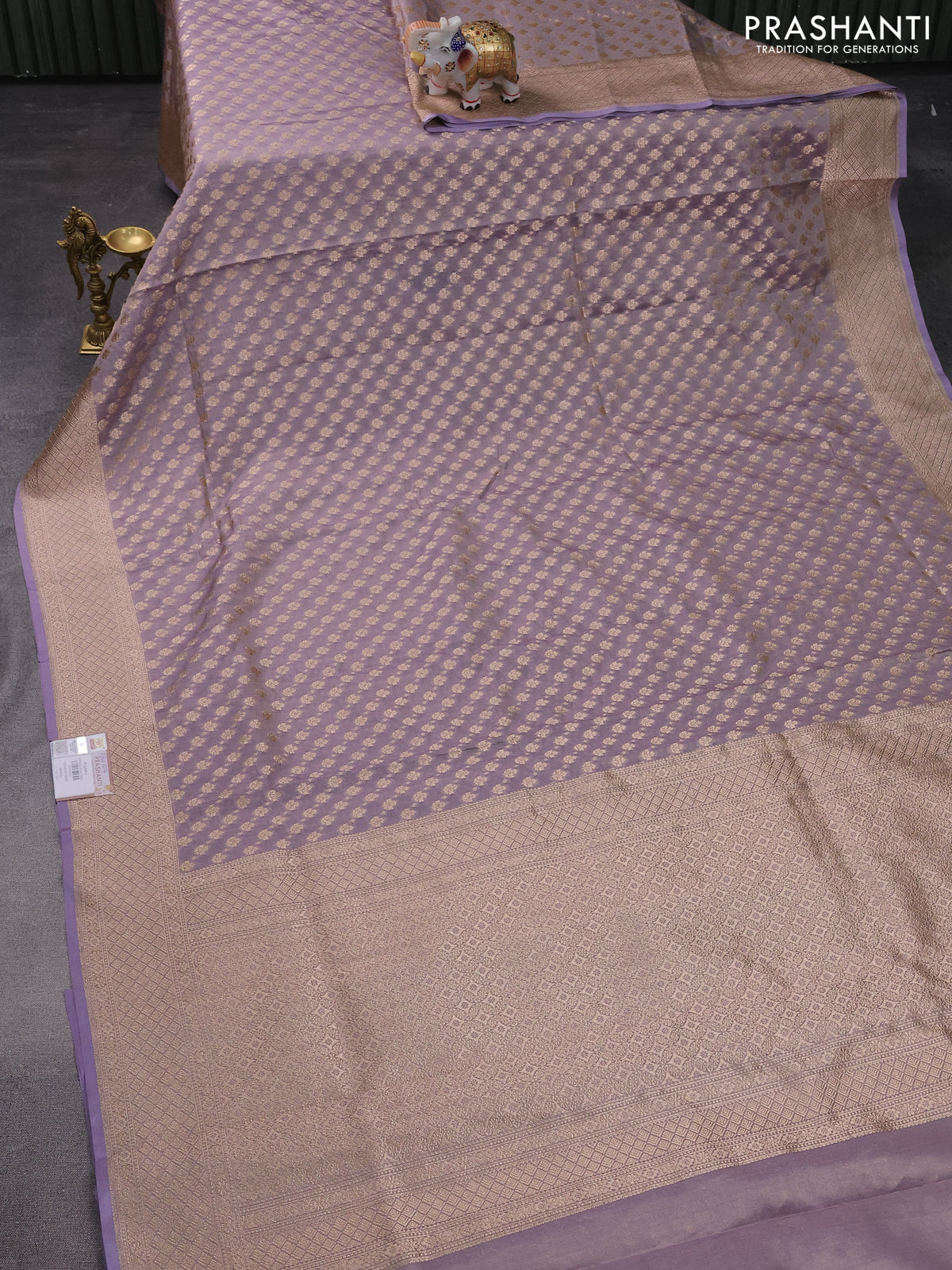 Banarasi tissue silk saree pastel lavender with allover zari woven brocade weaves and zari woven border