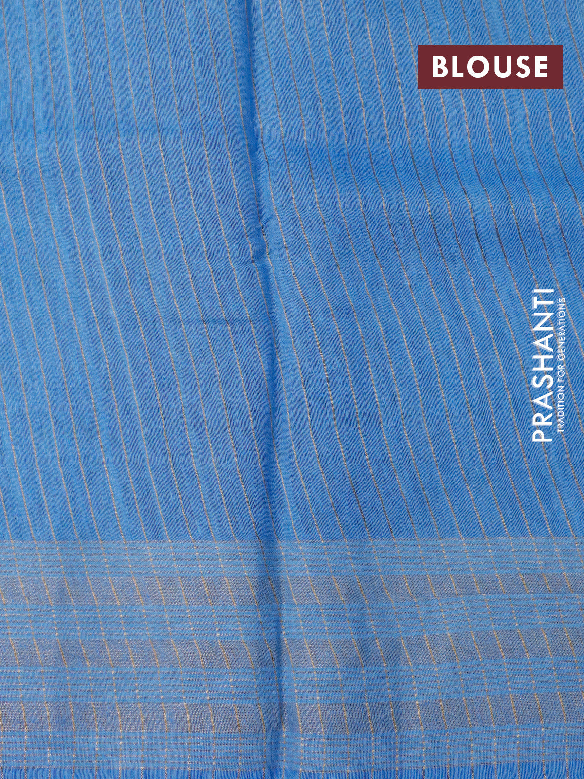 Banarasi tussar silk saree blue shade with plain body and printed pallu