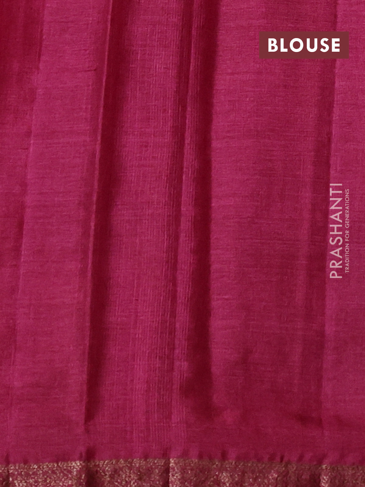 Banarasi tussar silk saree peacock blue and magenta pink with thread & zari woven floral buttas and woven border