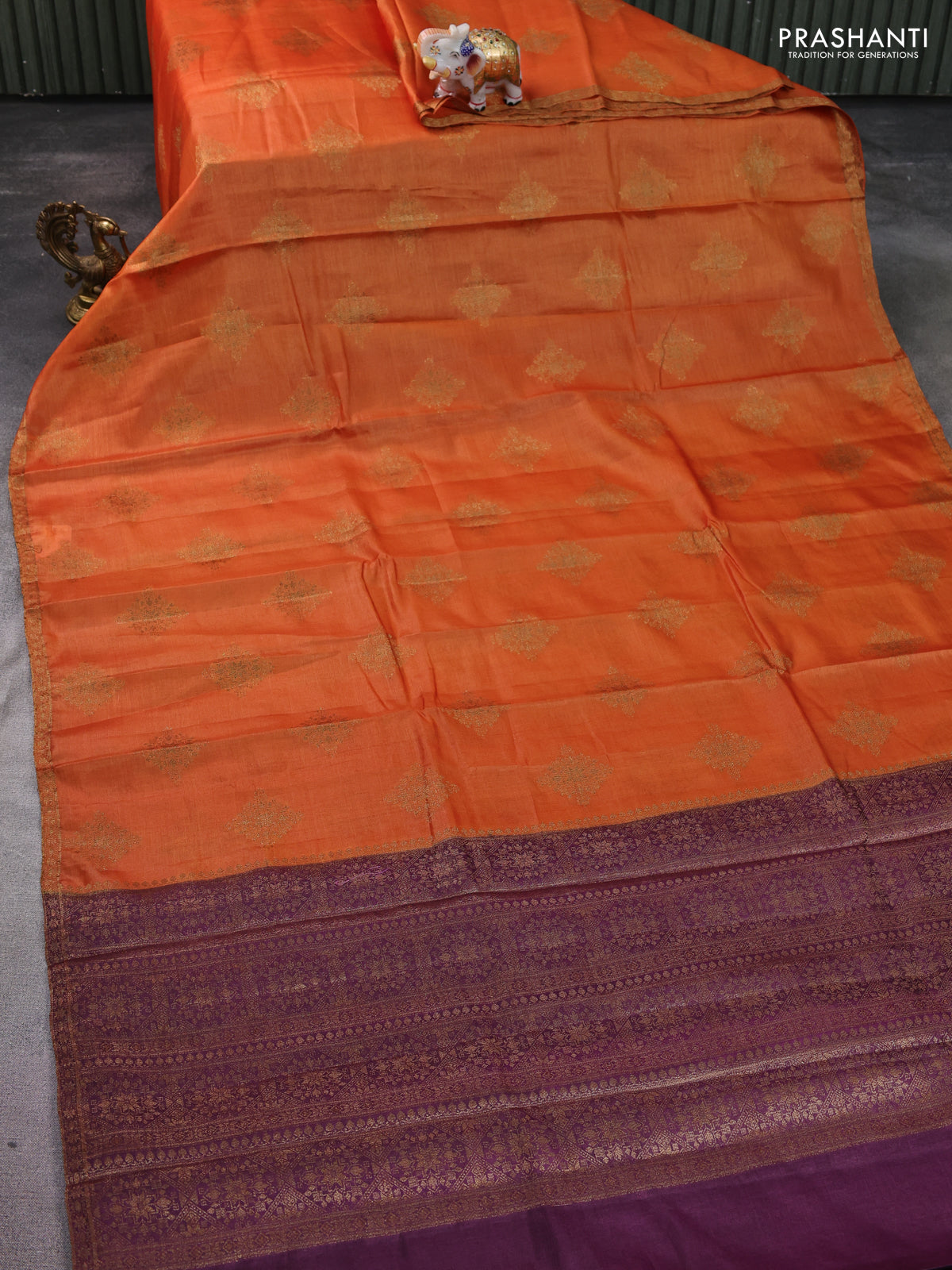 Banarasi tussar silk saree rustic orange and purple with thread & zari woven buttas and woven border
