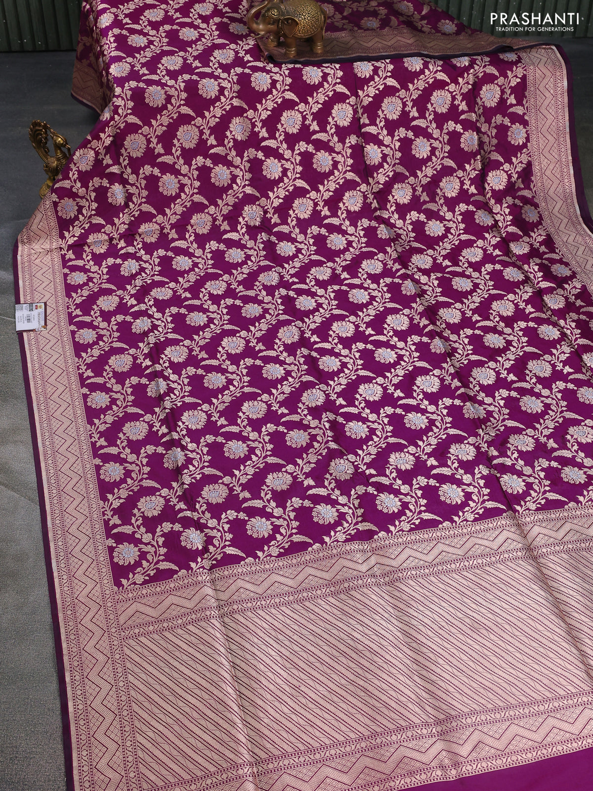 Banarasi uppada silk saree dark magenta pink with allover zari woven brocade weaves and zari woven border