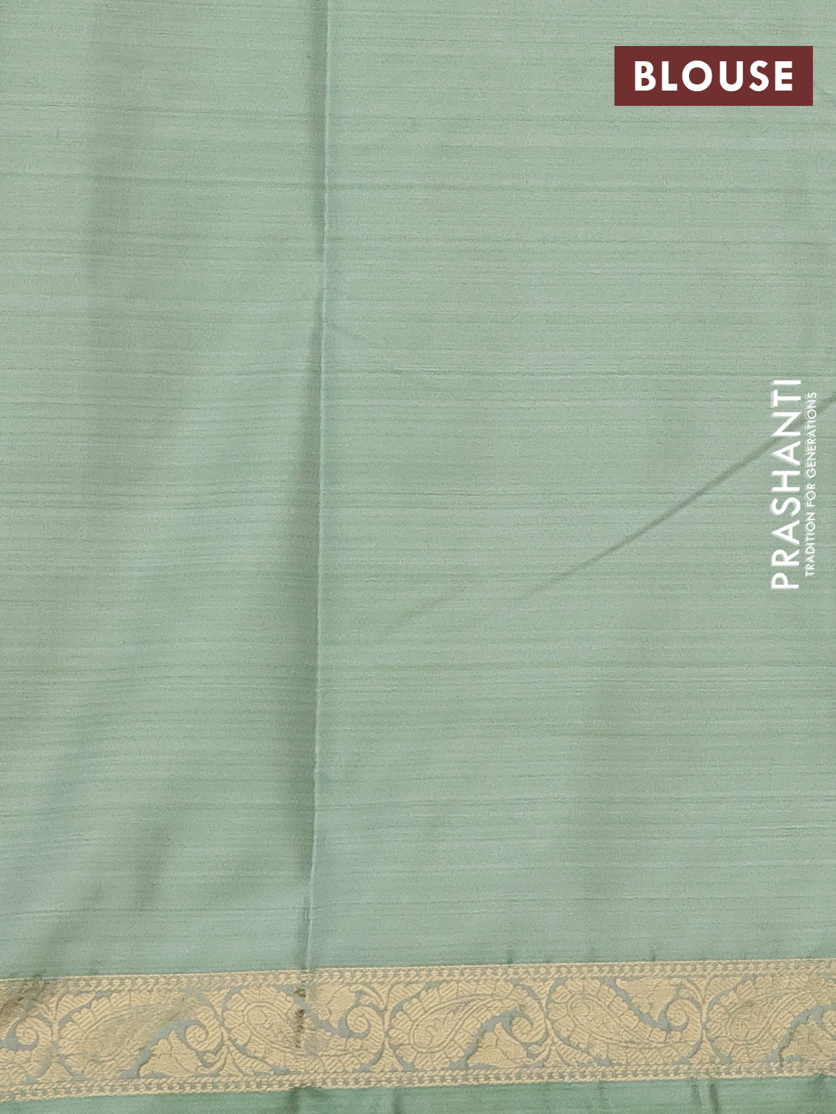 Bangalori semi silk saree cream and pastel green with allover ikat weaves and zari woven border