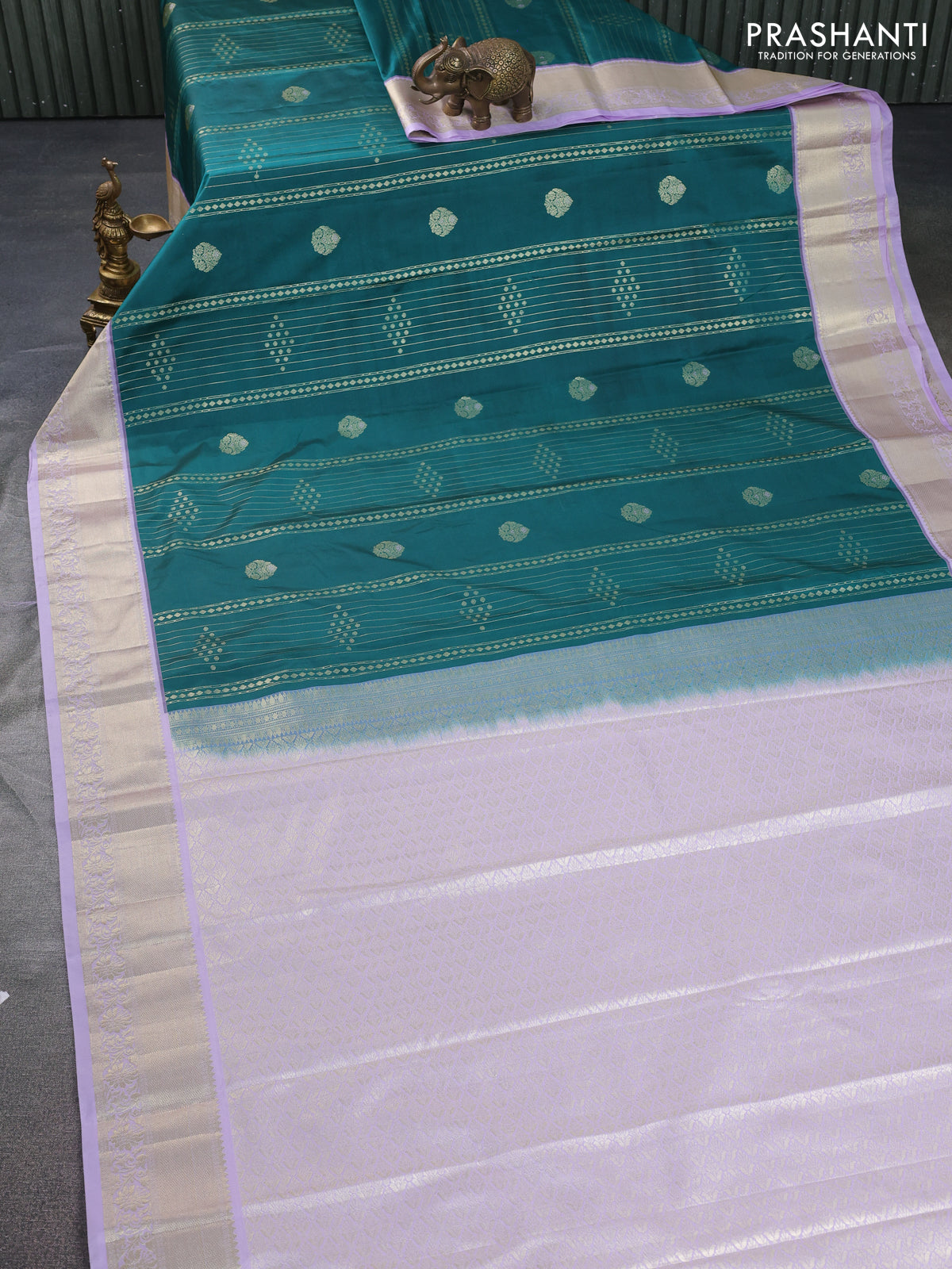 Bangalori silk saree peacock green and lavender with allover zari weaves and zari woven border