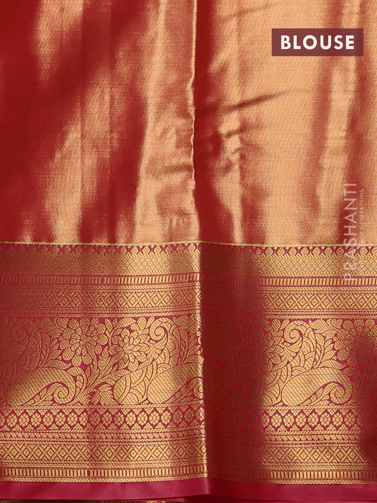 Bangalori tissue silk saree dual shade of mehendi green and reddish pink with allover zari woven brocade weaves and long zari woven border