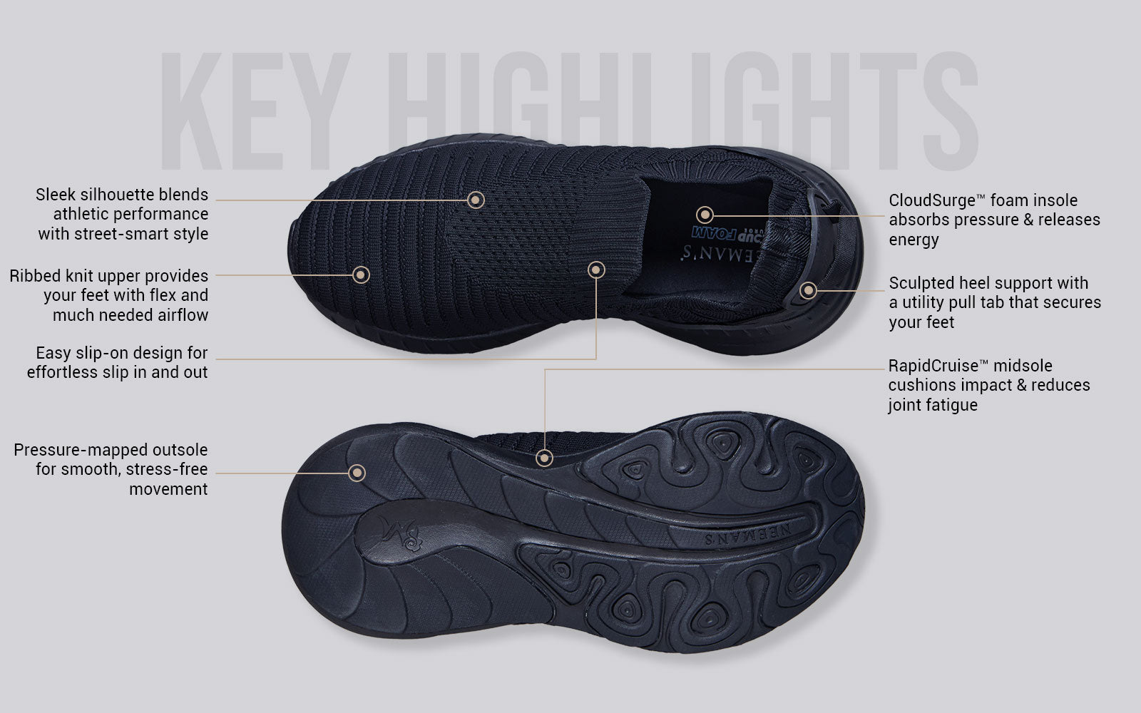 Urban terrain? Consider it handled. With our RapidCruise™ midsole tech to cushion impact, an energy returning foam insole, a pressure-mapped outsole that manages stress on joints & ankles, and a stretch-knit upper that moves & breathes with you, the Begin Walk Trek is made to conquer curbs, commutes, and everything in between.