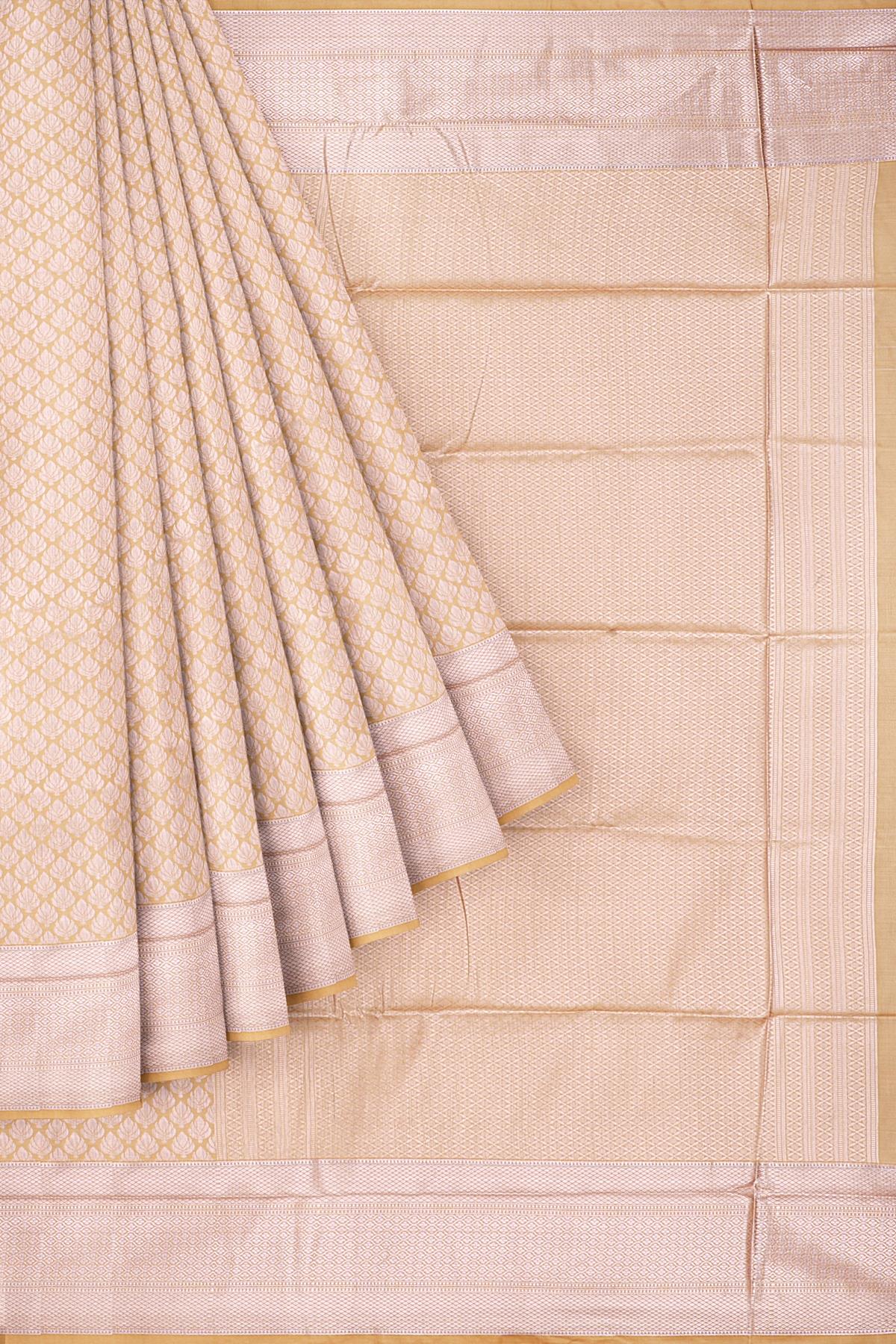 BEIGE and SILVER FLORALS SILK BLEND Saree with SEMI PATTU