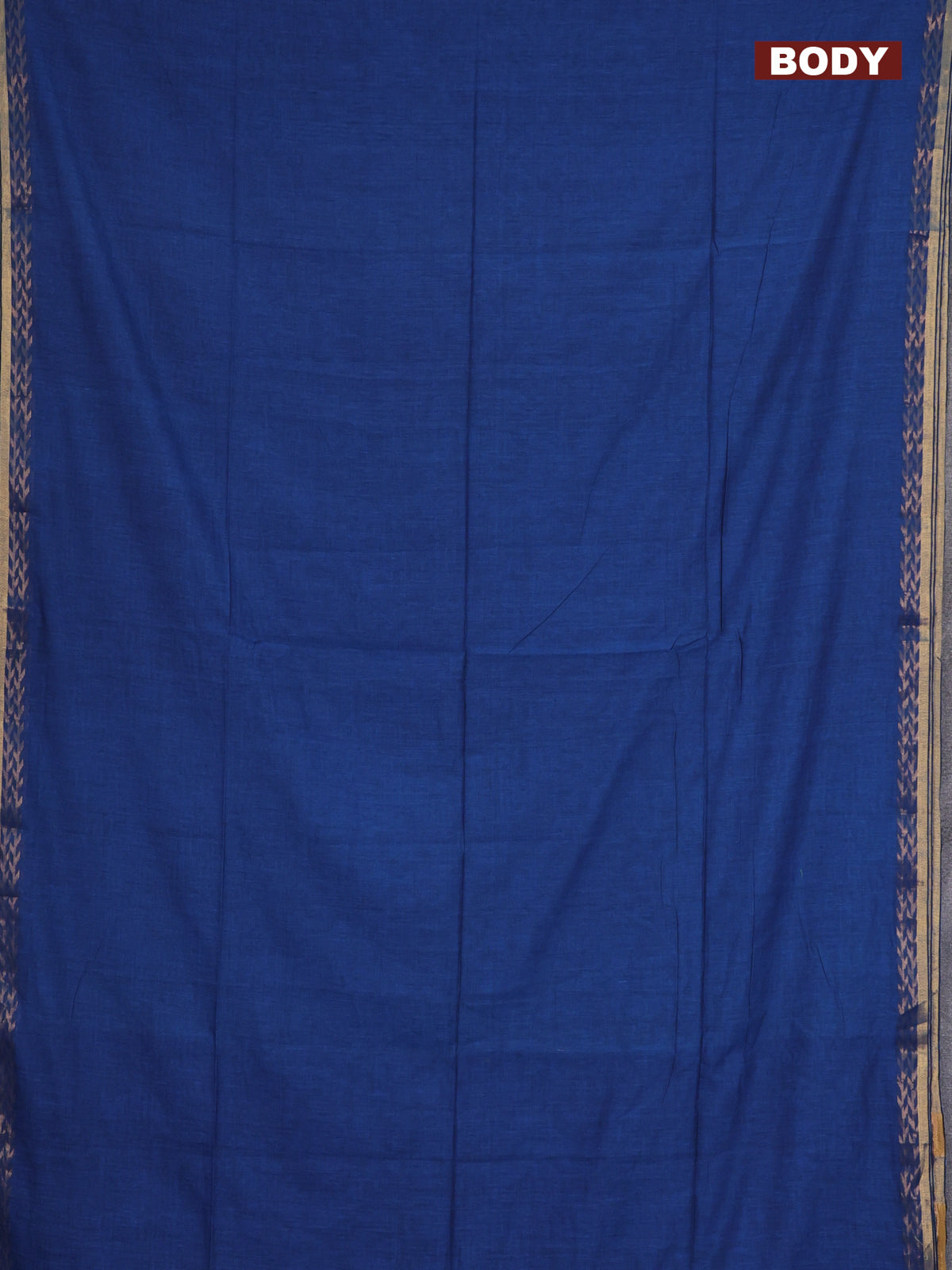 Bengal soft cotton saree blue and dark mustard with plain body and zari woven border