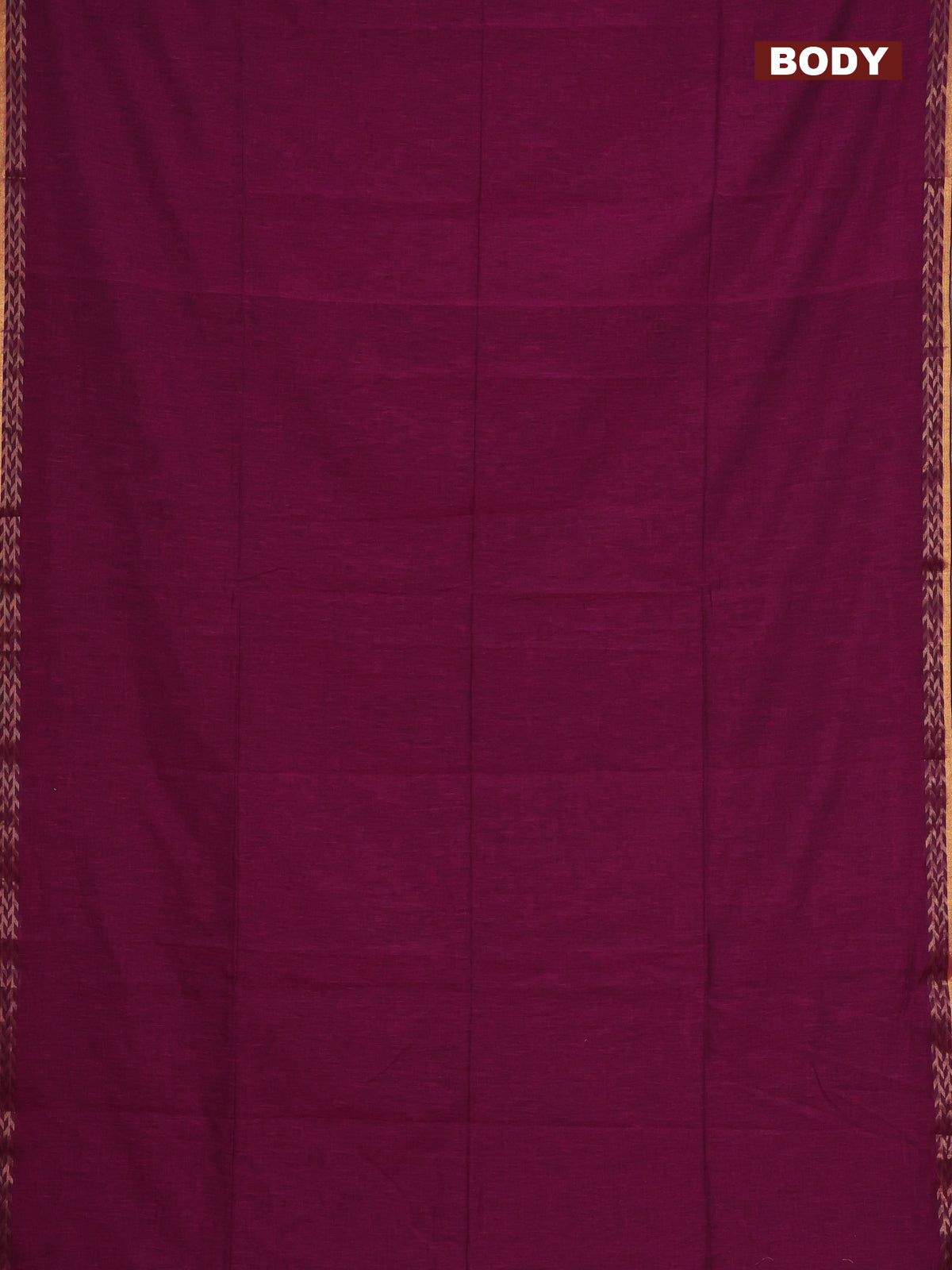 Bengal soft cotton saree dark magenat pink and blue with plain body and zari woven border