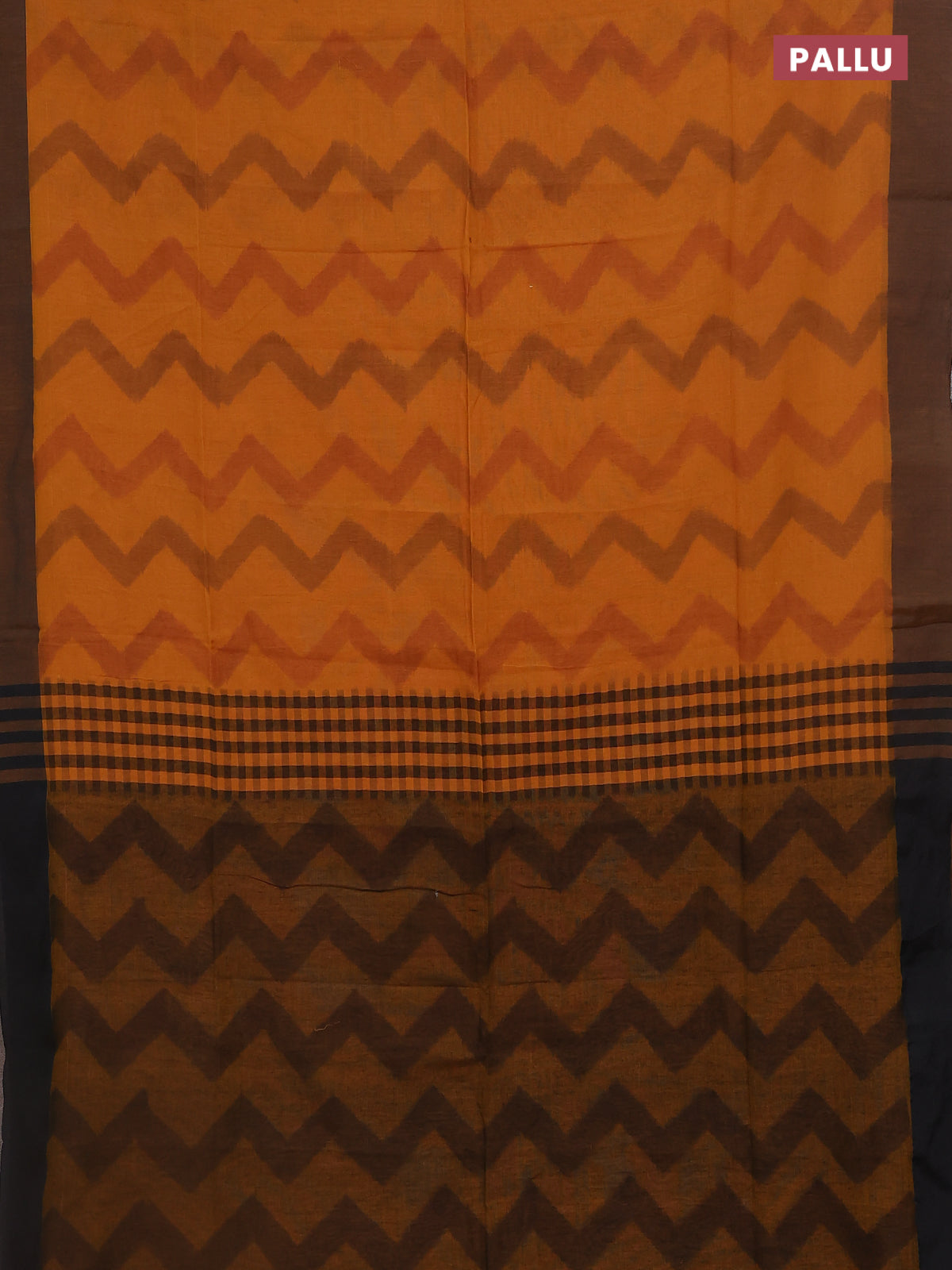 Bengal soft cotton saree dark mustard and black with allover weaves and simple border