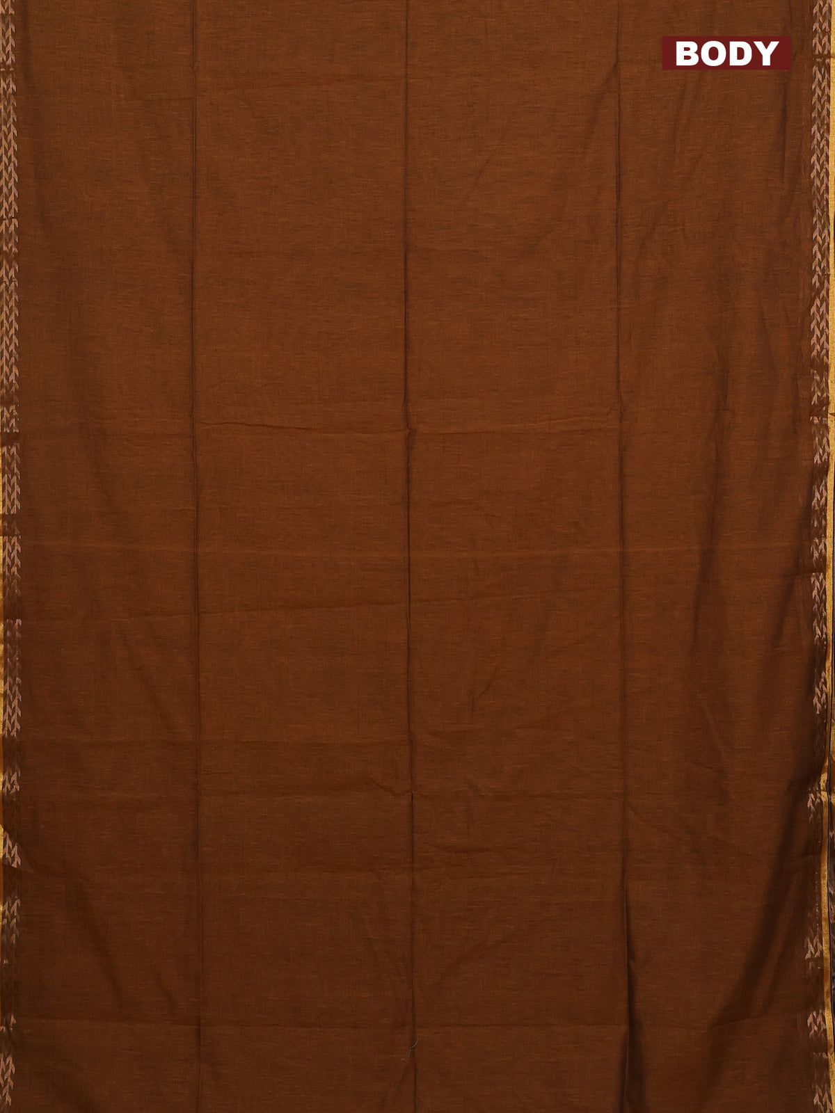 Bengal soft cotton saree dark mustard and violet shade with plain body and zari woven border