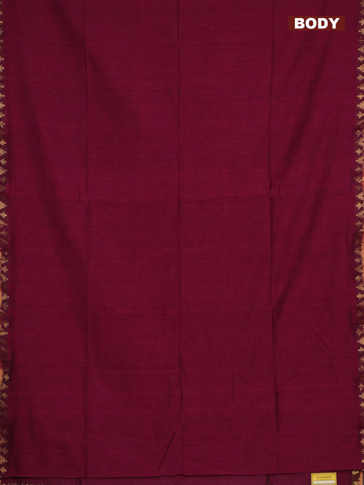 Bengal soft cotton saree magenta pink and teal green with plain body and zari woven border