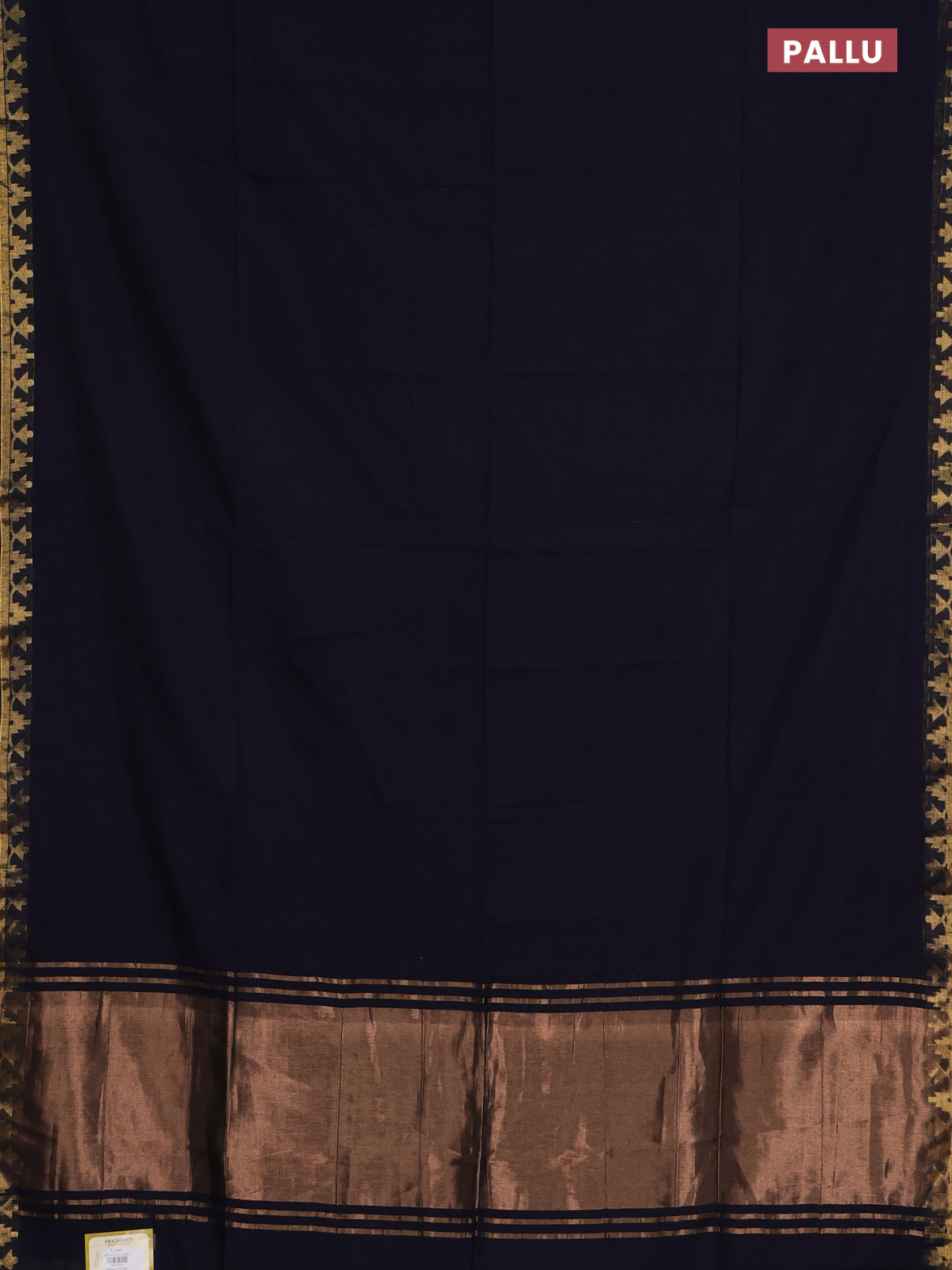 Bengal soft cotton saree navy blue and violet with plain body and zari woven border