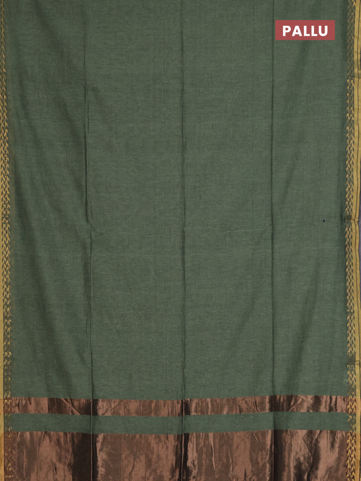Bengal soft cotton saree pastel green and violet with plain body and zari woven border