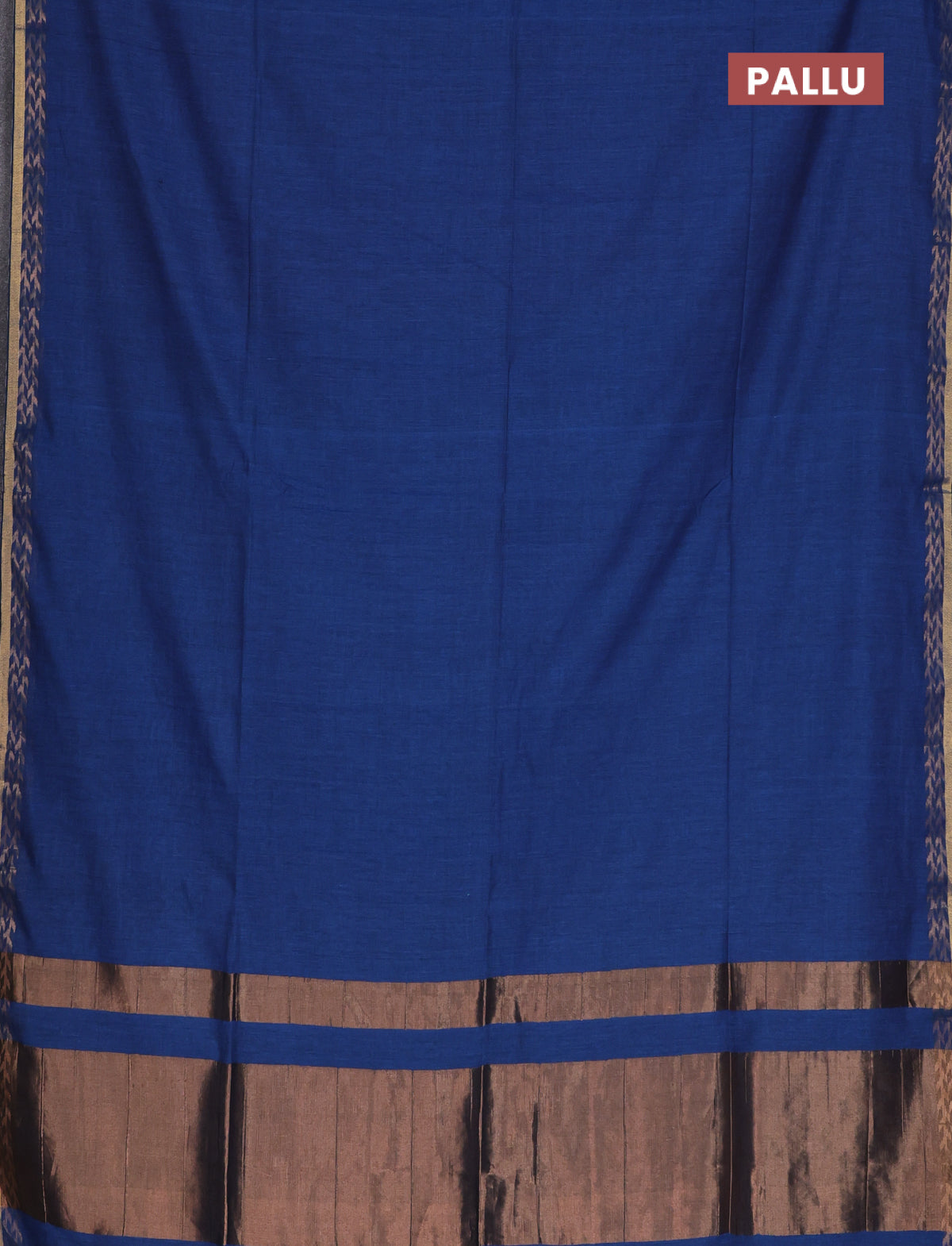 Bengal soft cotton saree peacock blue and red with plain body and zari woven border