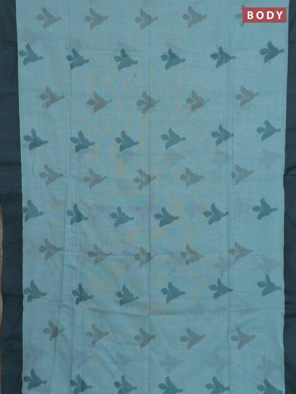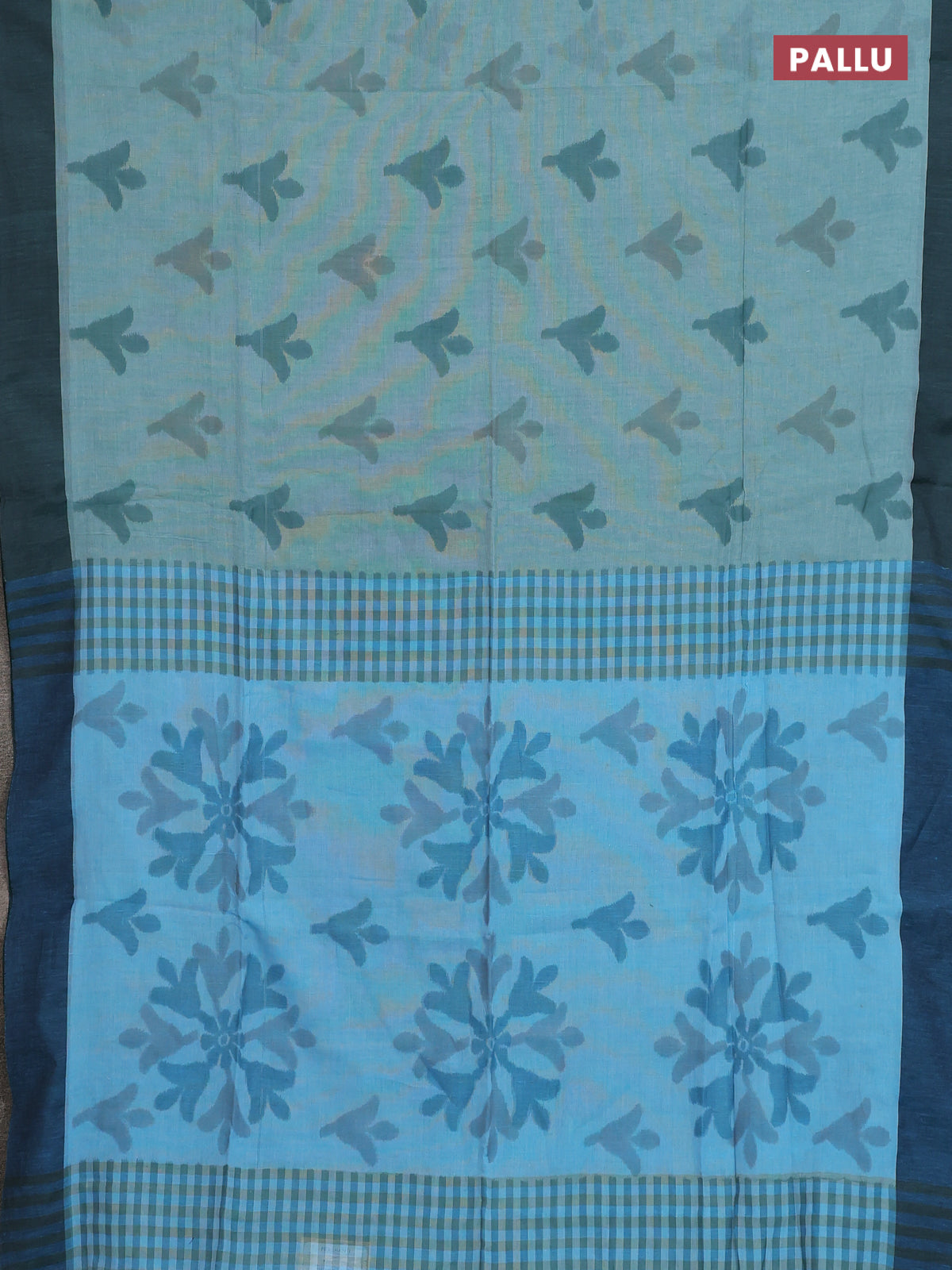 Bengal soft cotton saree teal green and light blue with allover butta weaves and simple border