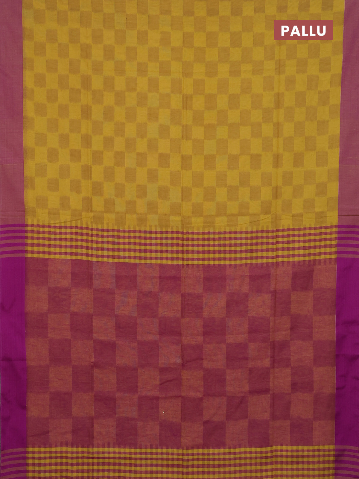Bengal soft cotton saree yellow and violet with allover weaves and simple border