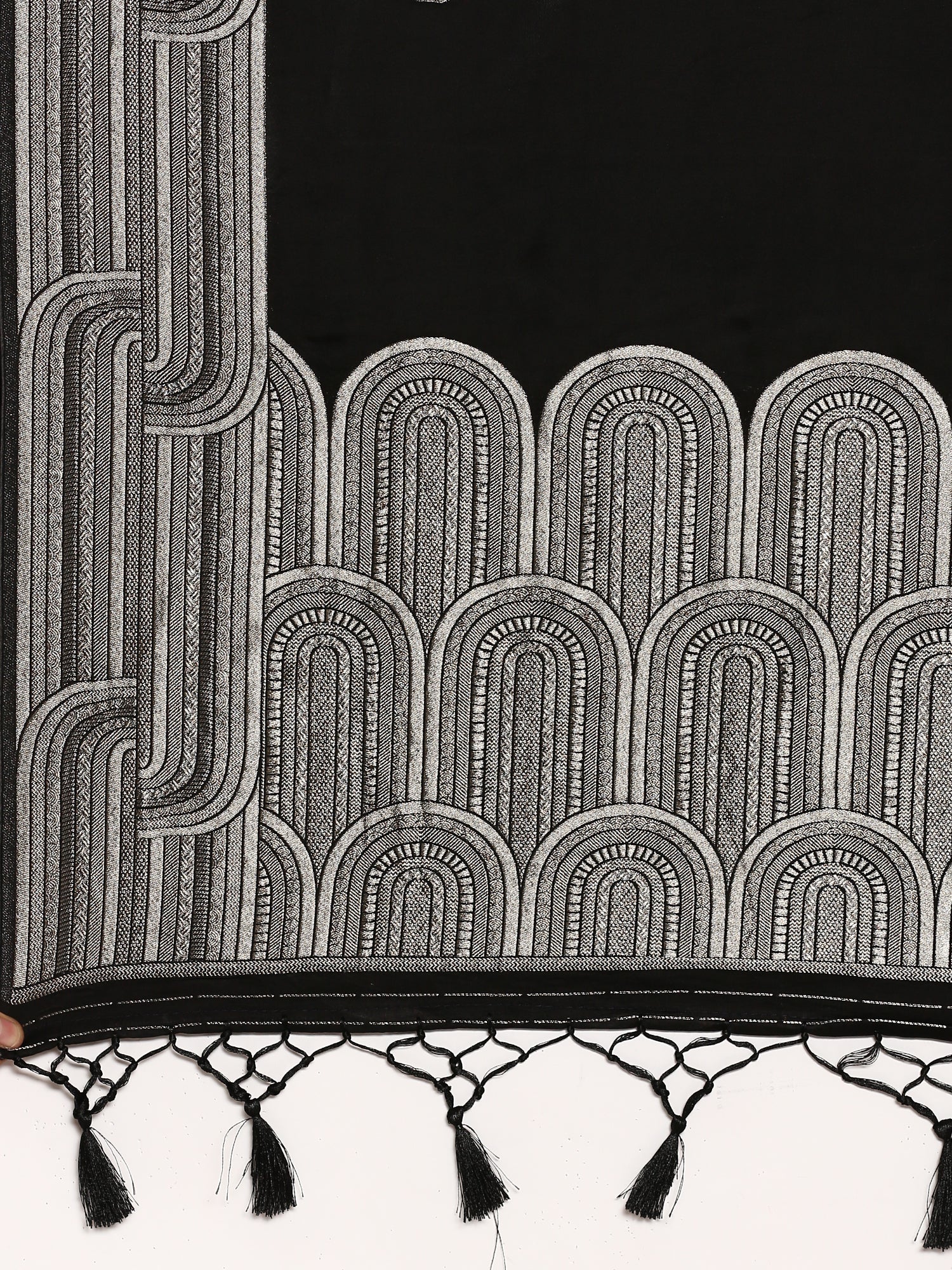 Black Banaras Silk Saree With Silver Zari Motifs & Border