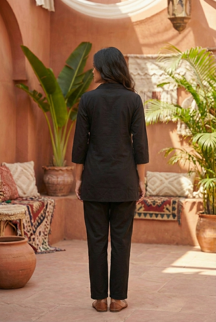 Black Cotton Floral Hand Embroidery Coord Set