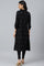 Make a statement at your next special event with this striking black kurta. Crafted from 100% viscose using a woven construction technique, this ethnic piece combines comfort and style effortlessly. The a-line silhouette flatters various body types, while the round neckline adds a touch of elegance. The three-quarter sleeves provide versatility for different seasons and occasions. What sets this kurta apart is its beautiful embroidery work, adding intricate details that catch the eye. The rayon fabric ensures a soft and breathable feel against your skin, making it comfortable for extended wear. This black kurta is a versatile addition to your wardrobe, perfect for those who appreciate the fusion of traditional design with contemporary aesthetics.