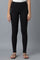 Black Solid Skinny Fit Cotton Tights With Elasticated Waistband