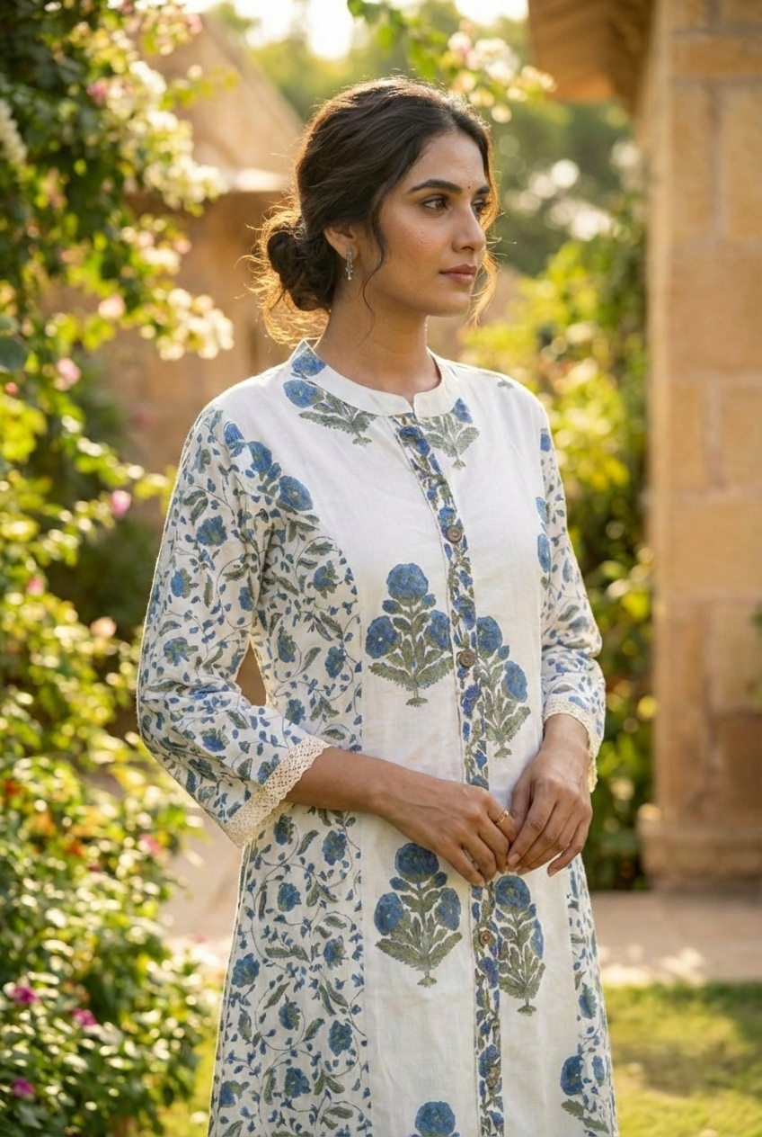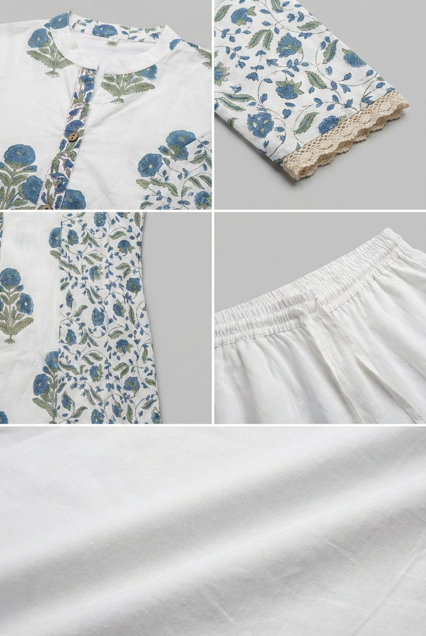 Embrace effortless elegance with this charming blue cotton two-piece set, featuring a delicate floral print that brings nature's beauty to your wardrobe. Crafted from soft, breathable cotton, this versatile ensemble offers comfort for everyday wear while maintaining a polished, put-together look. Perfect for casual outings, weekend gatherings, or relaxed work settings, the coordinated pieces work seamlessly together or can be styled separately for multiple outfit combinations. The timeless floral design adds a touch of femininity and grace, making it an essential addition to any wardrobe that values both style and comfort.